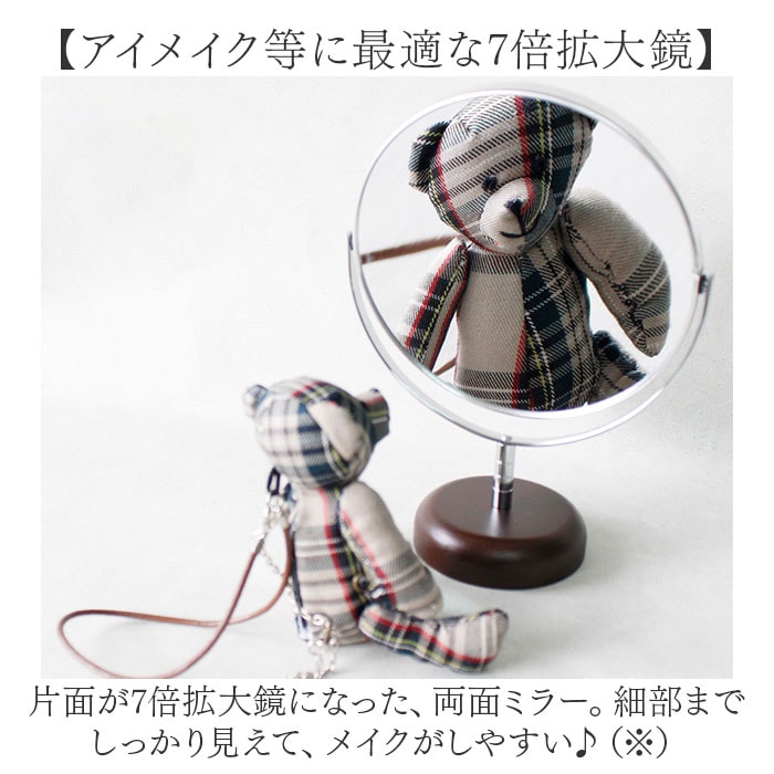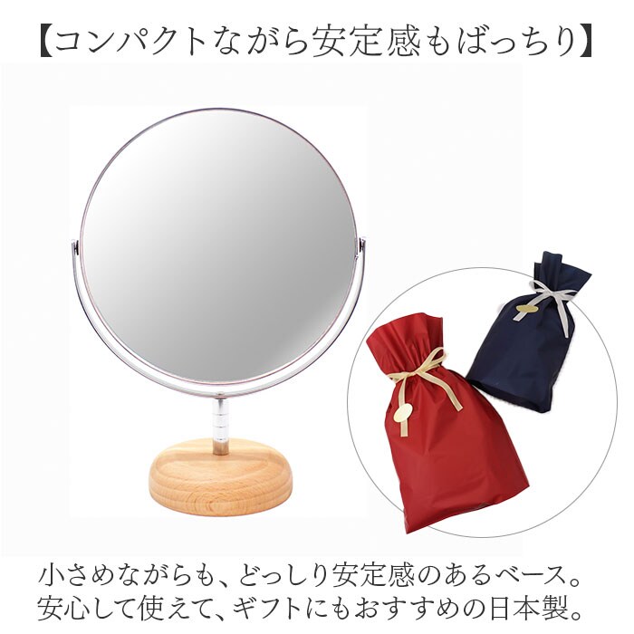 | 商品説明 | 【手軽に使えて細かい部分もハッキリ】シンプルで使い勝手抜群。「Acoustic ウッドアルミスタンドミラー7倍鏡 ショート」【空間に溶け込むナチュラル感】ベースには天然木の無垢材を。スタイリッシュなシルバーミラーにマッチし、温かみをプラス。【アイメイク等に最適な7倍拡大鏡】片面が7倍拡大鏡になった、両面ミラー。細部までしっかり見えて、メイクがしやすい♪(※)表は等倍鏡、裏は約7倍の拡大鏡です。【360度回転する便利なミラー】・360度回転式で、お好みの角度に微調整。回転させることで、両面使い分けもラクラク。【工具いらずで取り付けカンタン】ミラーステムを台座の穴に差し込み、裏から蝶ネジをとめるだけ。スムーズにセットできる◎【コンパクトながら安定感もばっちり】小さめながらも、どっしり安定感のあるベース。安心して使えて、ギフトにもおすすめの日本製。 |