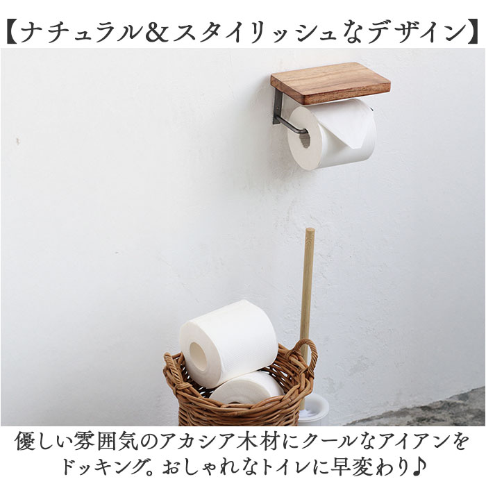 | 商品説明 | 【トイレをお気に入りの空間に♪】ナチュラルなアカシア材がおしゃれな「アカシア ペーパーホルダー」が登場!【ナチュラル&スタイリッシュなデザイン】優しい雰囲気のアカシア木材にクールなアイアンをドッキング。おしゃれなトイレに早変わり♪【天然素材が魅せる、あたたかみ】天然素材ならではの木目が特徴。ほっこりあたたかみのある、表情豊かなニュアンス感が魅力。※天然木を使用しているため、色味や風合いに個体差があります。【ちょこっと乗せられる天板が便利】天板の上には予備のトイレットペーパーをストックや、スマホなどの小物を置ける仕様。【ペーパー交換がラクチン!】ペーパーを差し込むだけのシンプル設計。交換がラクチンなのも嬉しいポイント。【自分で取り付けできる】壁面に3ヵ所ネジを固定するだけで設置完了!女性でも簡単に取り付けできるのが嬉しい!※付属品はネジ3本です。 |