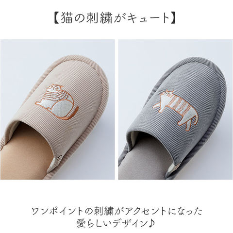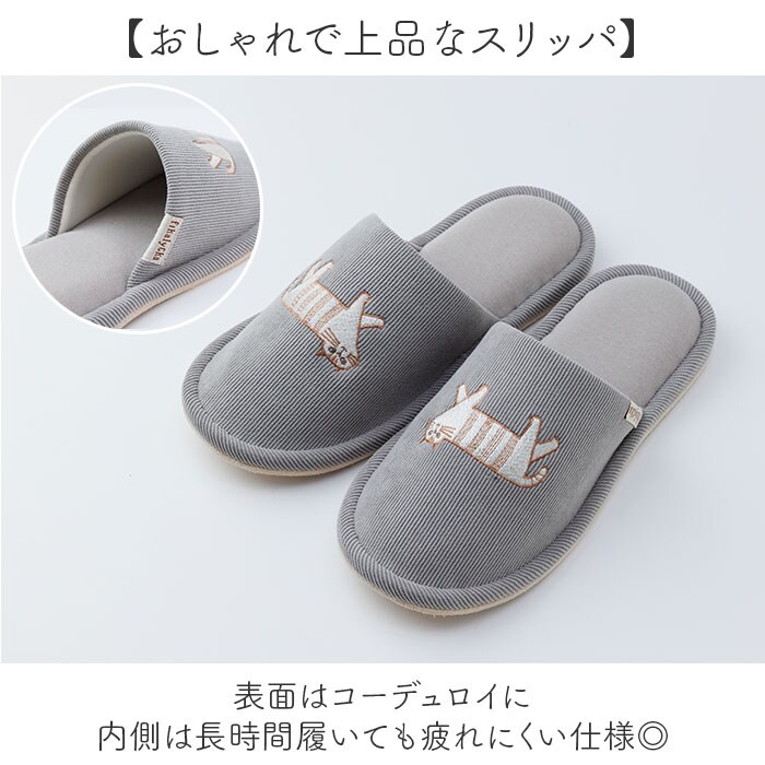 商品説明【低反発でふんわり履き心地】猫がかわいい「fika lyckaコーデュロイスリッパ」【猫の刺繍がキュート】ワンポイントの刺繍がアクセントになった愛らしいデザイン♪【おしゃれで上品なスリッパ】表面はコーデュロイに内側は長時間履いても疲れにくい仕様◎【インテリアに馴染む色】落ち着いたカラー展開で、並べても履いても可愛いデザイン。【底面滑り止め付き】床を傷つけない素材に滑り止めがついて安心。【洗えるスリッパ】水洗い(手洗い)できるのでいつでも清潔。【選べるサイズとカラー】自宅用はもちろん来客用として揃えるのもおすすめ。