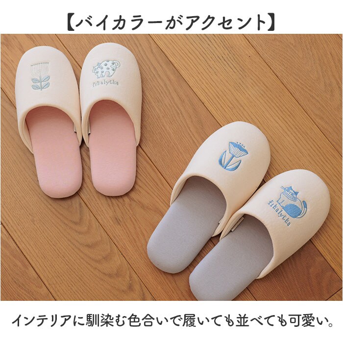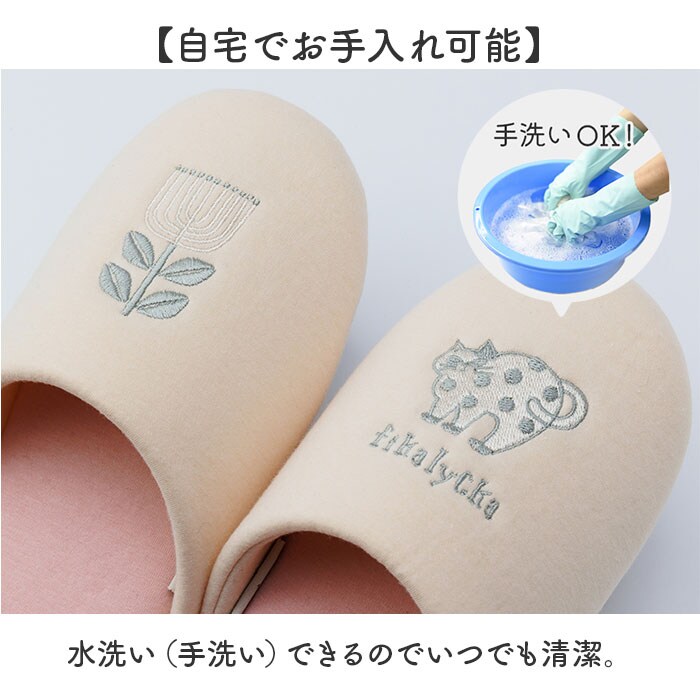 | 商品説明 | 【猫の刺繍がキュート】やさしい履き心地の「fika lyckaソフトスリッパ」【おしゃれで上品】肌触りの良い生地感と内側はクッション性があるので疲れにくい◎【バイカラーがアクセント】インテリアに馴染む色合いで履いても並べても可愛い。【底面滑り止め付き】足裏はフローリング階段など滑りやすいところでも安心して履ける。【自宅でお手入れ可能】水洗い(手洗い)できるのでいつでも清潔。【カラバリを愉しむ】自宅用はもちろん来客用として揃えるのもおすすめ。 |