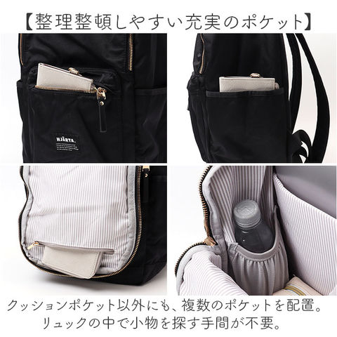 | 商品説明 | 【お出かけの頼れる相棒に☆】たっぷり入って万能◎気軽に持ち出せる「HJARTA リュック」が新登場。【お出かけはこれ1つで完璧】マチが広く収納力抜群!薄手の着替えなども収まり、レジャーや旅行などマルチに活躍。【ガバっと開くダブルファスナー】左右どちらからもオープン!取り出しやすく、ファスナーを閉じればセキュリティ面も安心。【A4対応◎通勤・通学にも最適】A4サイズがすっぽり。ノートPCが入るポケットを装備し、クッション材入りで衝撃をガード。【整理整頓しやすい充実のポケット】クッションポケット以外にも、複数のポケットを配置。リュックの中で小物を探す手間が不要。【負担をかけず背負い心地快適】背面とショルダーにはクッション性をプラス。肩に食い込みにくく、ボディに優しくフィット。【ラフなスタイルに素敵にマッチ】シンプルなワンカラーに、フロントロゴや内生地がアクセント。カジュアル感のある仕上がり☆【HJARTA-ヤッタ-】テキスタイルデザイナー吉澤葵さんが描いた、温かみのあるアートを使用。(※)スウェーデン、フィンランドで活躍しているデザイナーさんです。【ポケット仕様】内側:クッションポケット×1、ボトルポケット×1(メッシュ&上ゴム仕様)、ファスナーポケット×1前面:ファスナーポケット×1サイド:オープンポケット×2 |