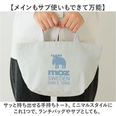 | 商品説明 | 【色んな場面で使えるお出かけの相棒】北欧ブランド”moz”☆プライバシーも確保できる「ファスナーの付いた帆布トートM」。【持っていればヘビロテ間違いなし】ナチュラルな風合いのコットンキャンバス生地。丈夫でガシガシ使えて、シーズンレスで活躍◎【メインもサブ使いもできて万能】サッと持ち出せる手持ちトート。ミニマルスタイルにこれ1つで、ランチバッグやサブとしても。【開閉スムーズ、安心のファスナー式】ガバっと開いて取り出しやすく、ファスナーを閉じれば中身の飛び出しをガード。【たっぷり入って使いやすい広々マチ】A5サイズ対応。マチが広くお弁当箱やタンブラー、ポーチなどもざっくり収まるサイズ感。【サクッと取り出せて迷子知らず】内側にポケットと、鍵などを取り付けできるDカン。バッグの中で小物を探す手間が不要。【軽やかな使い心地でノンストレス】体に負担をかけない軽量設計。疲れを軽減できるのが嬉しいポイント。【デイリー使いしやすいカラーリング】コーデに馴染む、ベーシックカラー。mozのトレードマーク”ヘラジカ”がアクセント☆【ポケット仕様】内側:オープンポケット×1 |