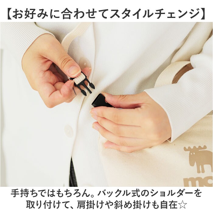 | 商品説明 | 【身軽にお出かけできる可愛い相棒】北欧ブランド”moz”☆ミニマルに持てる「ファスナーの付いた帆布トートS ショルダー付」【持っていればヘビロテ間違いなし】ナチュラルな風合いのコットンキャンバス生地。丈夫でガシガシ使えて、シーズンレスで活躍◎【メインもサブ使いもできて万能】サッと持ち出せるミニトート。ちょっとそこまでに1つで、アクティブシーンではサブとして。【お好みに合わせてスタイルチェンジ】手持ちではもちろん。バックル式のショルダーを取り付けて、肩掛けや斜め掛けも自在☆【開閉スムーズ、安心のファスナー式】ガバっと開いて取り出しやすく、ファスナーを閉じれば中身の飛び出しをガード。【必要最低限をすっきりひとまとめ】お財布やエチケットアイテム、タオルなどが収まるサイズ感。小さくてもマチはしっかりと♪【鍵などの紛失を防ぐDカン付き】内側にDカンを装備、鍵などをサッと取り付ければ、迷子知らずで失くさない!【軽やかな使い心地でノンストレス】体に負担をかけない軽量設計。疲れを軽減できるのが嬉しいポイント。【デイリー使いしやすいカラーリング】コーデに馴染む、ベーシックカラー。mozのトレードマーク”ヘラジカ”がアクセント☆ |