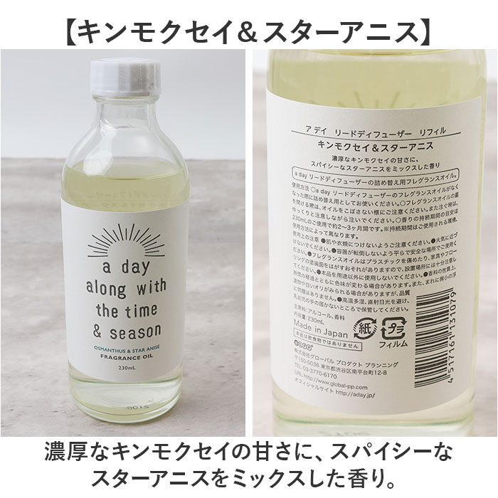 a day リードディフューザー リフィル【キンモクセイ&スターアニス】