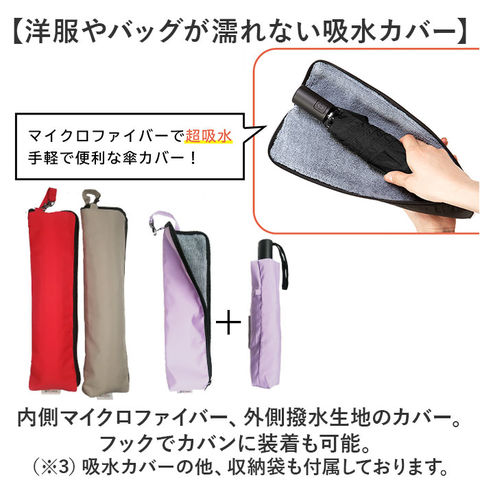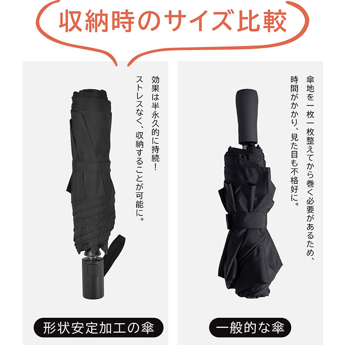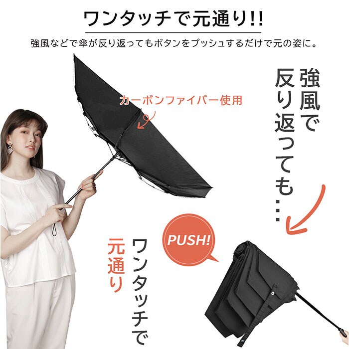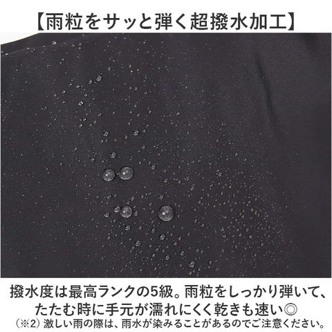 | 商品説明 | 【サッと折りたためてノンストレス】収納がスピーディー!形状安定タイプの「opera ワンタッチ式 カーボン折りたたみ雨傘」。【たたむ動作の煩わしさから解放】特殊な熱加工技術で、生地自体に折り目を。簡単キレイに折りたためる形状安定傘。(※1)半永久的に効果が持続します。【片手でワンタッチ!自動開閉式】手元のプッシュボタンを押すだけ◎片手が塞がっている時や、車の乗り降り時も手間取らない!【少ない力でシャフトを収納】どこでもストップする逆戻り防止機能付き。段階的に収納できる安全設計。【雨粒をサッと弾く超撥水加工】撥水度は最高ランクの5級。雨粒をしっかり弾いて、たたむ時に手元が濡れにくく乾きも速い◎(※2)激しい雨の際は、雨水が染みることがあるのでご注意ください。【軽量なのに強度の高い折りたたみ傘】カーボンファイバー&アルミ骨。軽やかな使い心地に加え、高強度で使い勝手抜群。【強風にも負けず瞬時に元通り】強い風に煽られて反り返ってしまっても、ワンプッシュで元通り!【耐久性をアップさせる超高密度生地】細い糸で打ち込まれ、目の詰まった30デニール生地。撥水力を保ちつつ丈夫な仕上がり。【サクッと留められるボタン式バンド】傘生地を留めるバンドは、バチンっと留めやすいスナップボタンタイプ。【握りやすく持ち運びもラクラク】適度な長さのハンドル。手首に通して持ち運べる、便利なストラップ付き。【洋服やバッグが濡れない吸水カバー】内側マイクロファイバー、外側撥水生地のカバー。フックでカバンに装着も可能。(※3)吸水カバーの他、収納袋も付属しております。【紫外線防止効果で晴れた日も】紫外線から守ることもできる、晴雨兼用傘。夏のお出かけの相棒にも。(※4)雨傘として使うことを主にしたアイテムです。色の濃淡により紫外線遮蔽率が異なります。数値の目安は淡色:約80%、濃色:約90%。【シーンを選ばないベーシックカラー】オン・オフ問わず持ちやすいカラー&シンプルデザイン。1本持っていれば安心。 |
