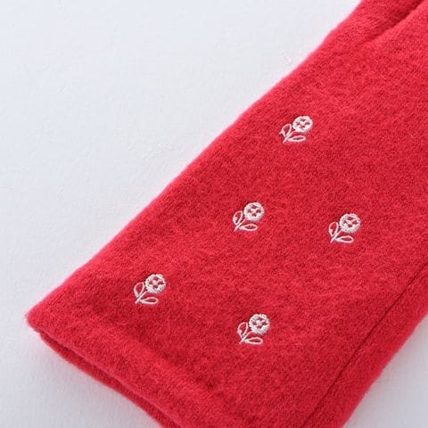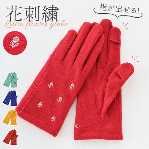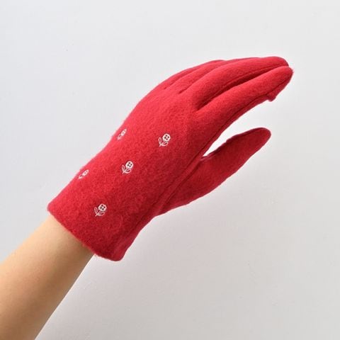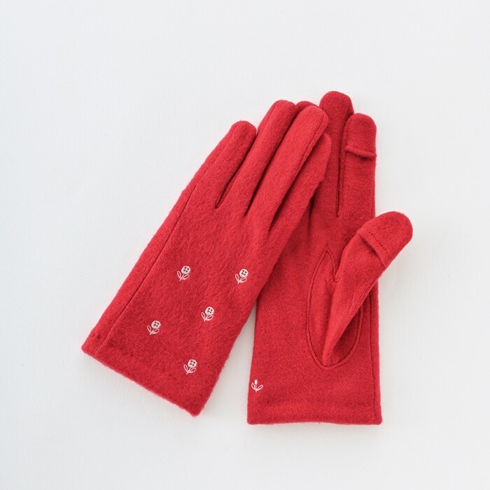 WOMEN フラワー刺繍ジャージグローブ【レッド2】