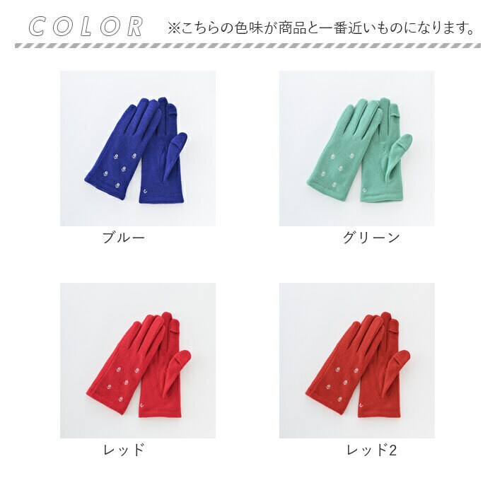 | 商品説明 | 小さなお花刺繍のジャージグローブ。掌にも、こっそり刺繍入り。裏地は、やわらかくあたたかなマイクロボアを使用。親指・人差し指にはスリットが入っている為、指先を出し入れでき、手袋を着用したままタッチパネル操作も可能。 |
