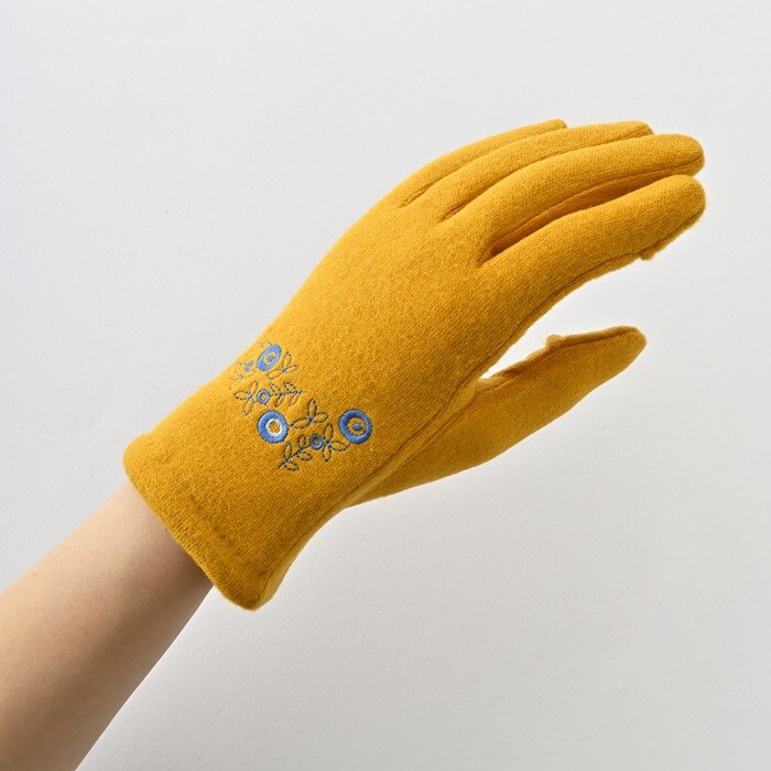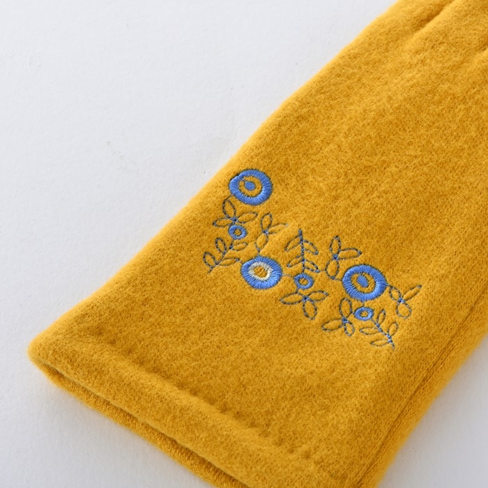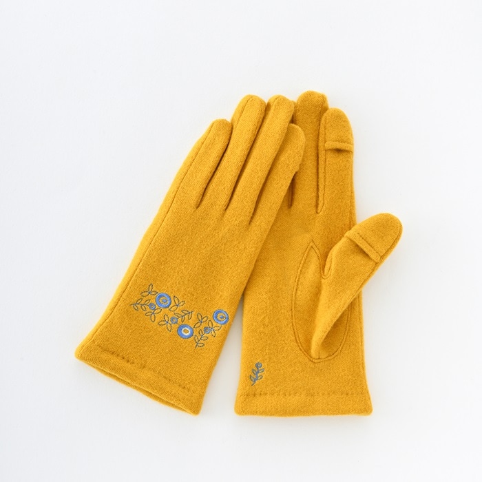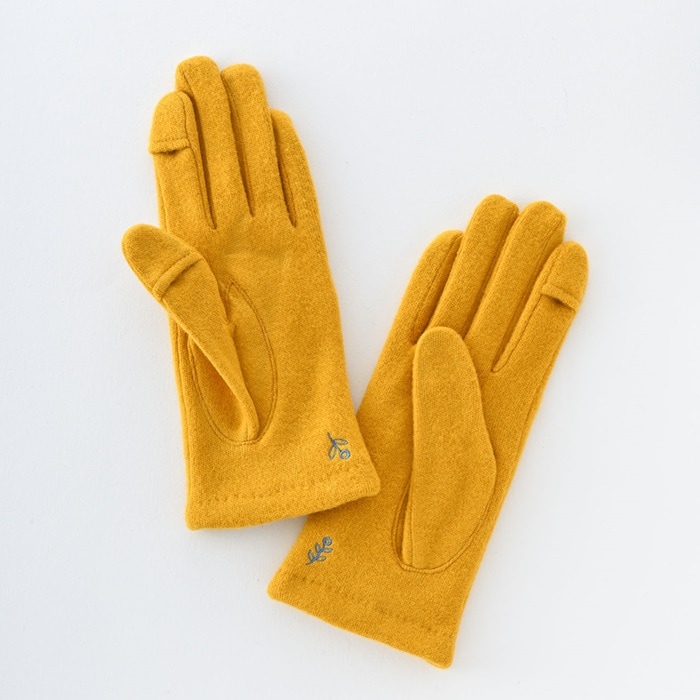 WOMEN ボタニカルモチーフ刺繍ジャージグローブ【イエロー】
