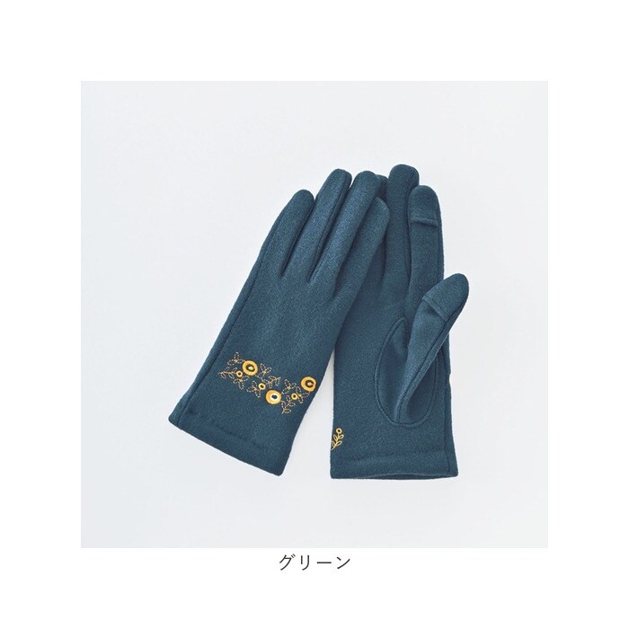 | 商品説明 | 華やかで瑞々しい北欧風のボタニカルカラーの刺繍がポイントのジャージグローブ。さりげなく掌側にもお花の刺繍入り。裏地は、やわらかくあたたかなマイクロボアを使用。親指・人差し指にはスリットが入っている為、指先を出し入れでき、手袋を着用したままタッチパネル操作も可能。 |