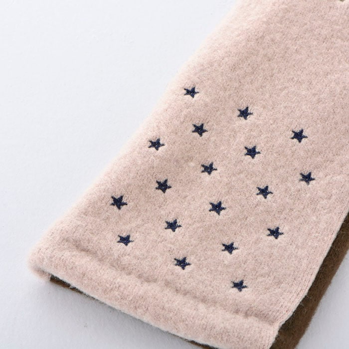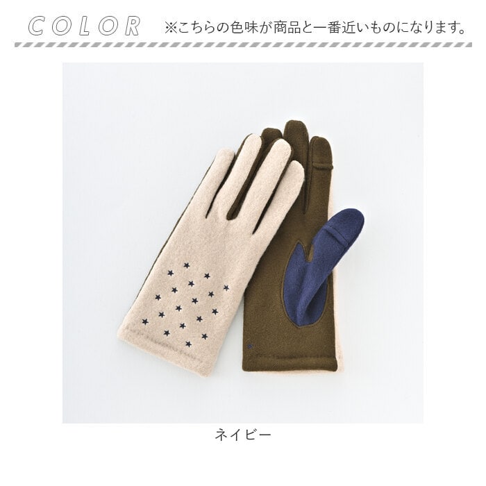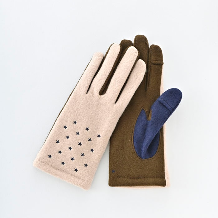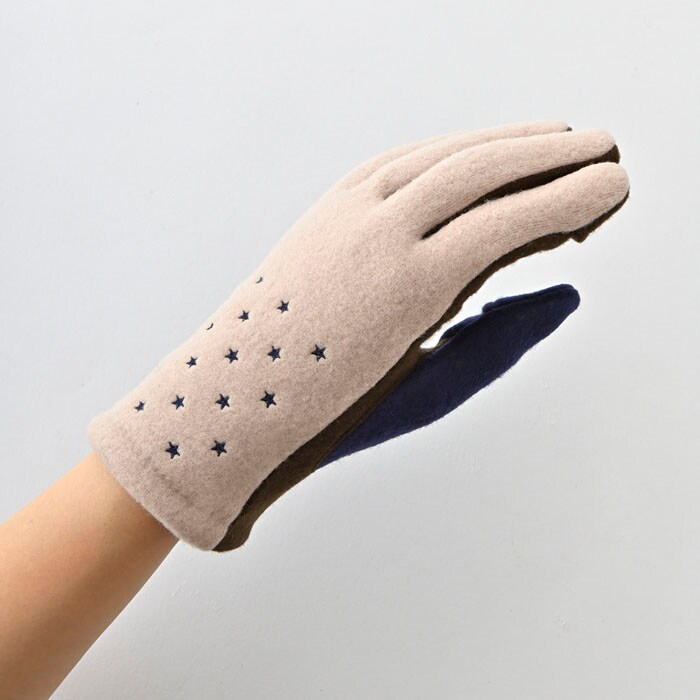 | 商品説明 | たくさんの星の刺繍と、甲・掌・親指でカラーが違う、遊び心のあるPOPなジャージグローブ。裏地は、やわらかくあたたかなマイクロボアを使用。親指・人差し指にはスリットが入っている為、指先を出し入れでき、手袋を着用したままタッチパネル操作も可能。 |