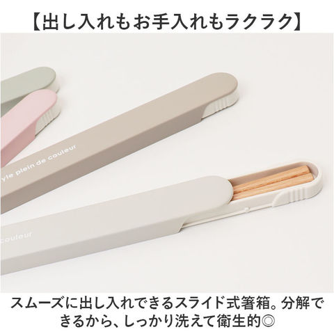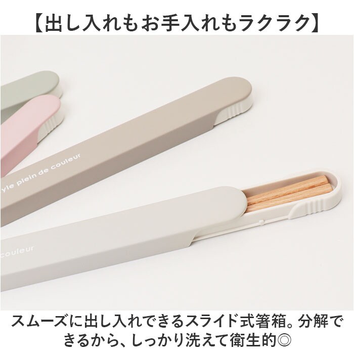 | 商品説明 | 【ランチのお供にぴったり】使いやすく、持ち運びにも便利。日本製の「Colors 箸ケースセット」が新登場。【出し入れもお手入れもラクラク】スムーズに出し入れできるスライド式箸箱。分解できるから、しっかり洗えて衛生的◎【抗菌加工でいつも清潔】ケース内側に抗菌+特殊塗装済みで、毎日使いも安心。【温かみのある木製のお箸】お箸はナチュラルな木目が美しい天然木素材。女性やお子様の手に馴染みやすい18cmサイズ。【可愛らしいナチュラルカラー】性別や年代問わず使いやすいカラーリング。家族色違いで揃えるのもおすすめ。 |
