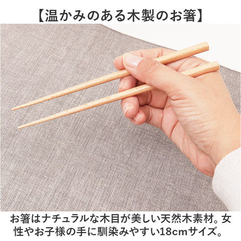 | 素材 | ・素地の種類 [箸]天然木 [箸ケース]ABS樹脂 ・表面塗装の種類 [箸]アクリル塗装 [箸ケース]ウレタン塗装 |