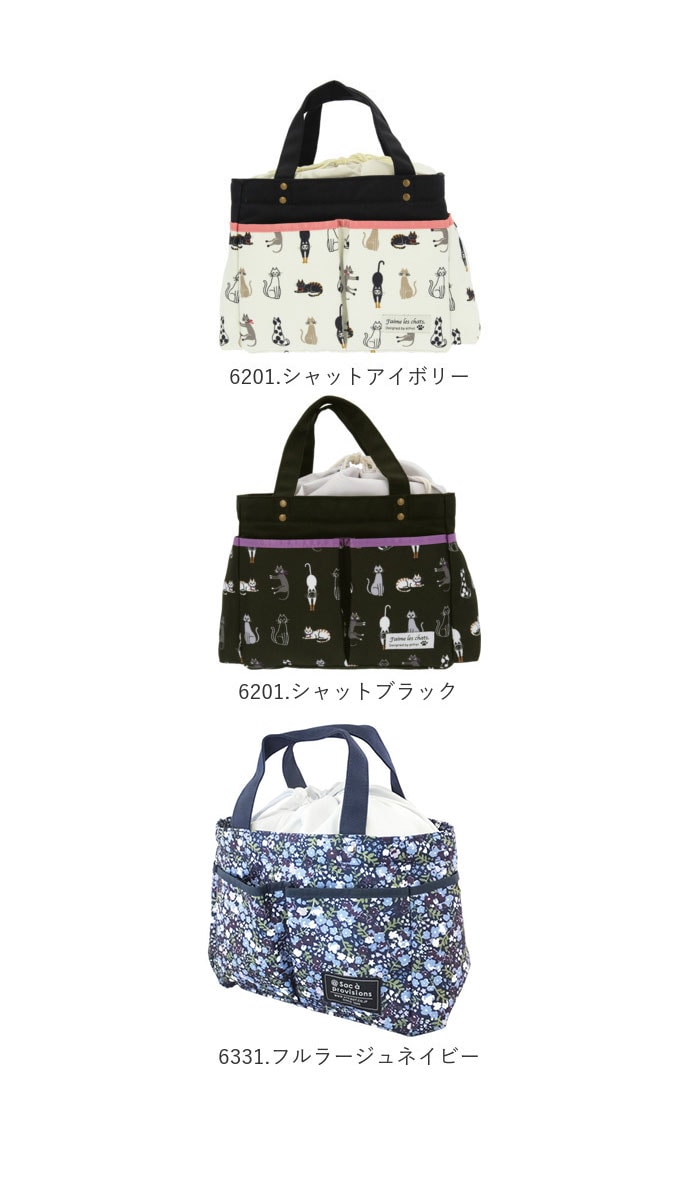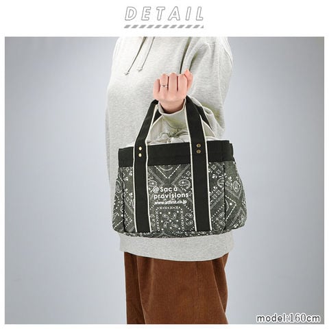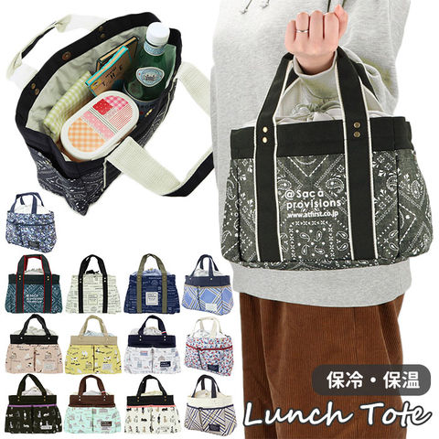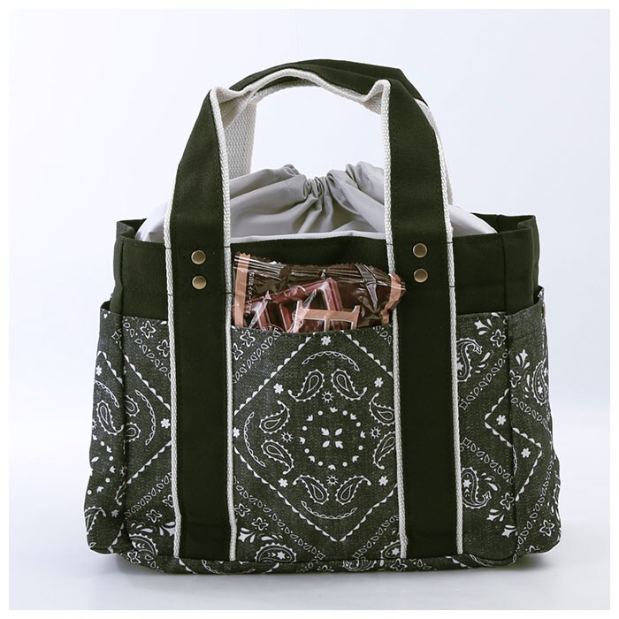 | 注意点 | 持ち手を強く引っ張ったり、重たい物を詰め込み過ぎて使用すると破損する恐れがあります。内側に保冷・保温効果を保つための材質を使用しておりますが、あくまでも簡易的なものなので、冷やす効果はありません。要冷蔵の食べ物や飲み物などを長時間入れたままにしないでください。外気温により保冷効果は異なります。この製品は、防水加工商品ではありません。凍らせたものを入れると結露した水が縫製部分より外側に染み出すことがあります。濡れた際は十分に拭き取り、直射日光を避けた風通しのよい場所で乾燥させてください。汚れた場合は固く絞った柔らかい布などで優しく拭いてください。火気には近づけないでください。お洗濯はお避け下さい。カメラやモニターの性質により、画像と実物の色の違いがある場合がございますのでご理解願います。 |