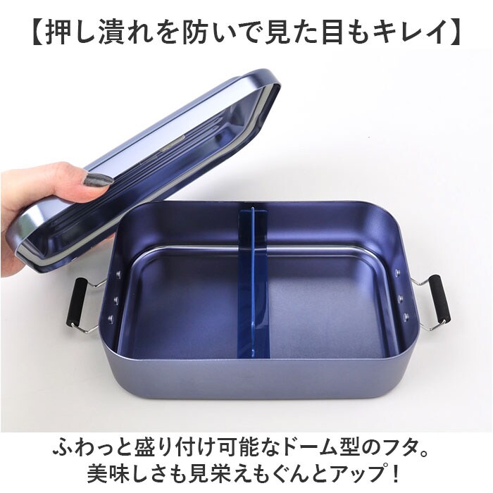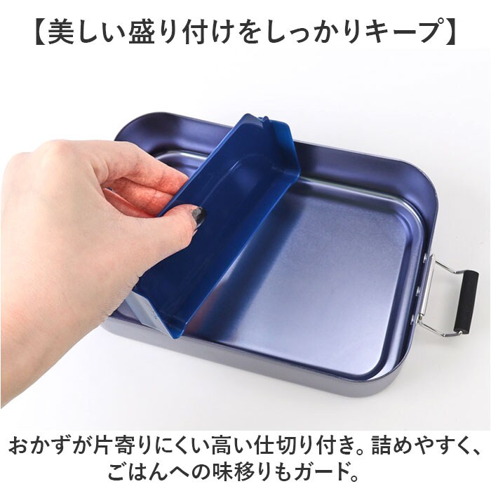 | 商品説明 | 【ランチのお供☆デイリーに活躍】丈夫で使い勝手抜群!安心して持ち歩ける「アルミふわっとランチボックス」。【レトロでおしゃれなデザインが魅力】ノスタルジック&スタイリッシュ!年代問わず使えて、ランチタイムがもっと豊かに。【熱を素早く冷ませるアルミ製弁当箱】プラスチックに比べて熱伝導に優れたアルミ製。熱々のごはんやおかずも早く冷ます◎【押し潰れを防いで見た目もキレイ】ふわっと盛り付け可能なドーム型のフタ。美味しさも見栄えもぐんとアップ!【美しい盛り付けをしっかりキープ】おかずが片寄りにくい高い仕切り付き。詰めやすく、ごはんへの味移りもガード。【たっぷり入って男性も大満足サイズ】沢山食べたいパパや学生さんにもぴったりな容量850ml。片手で持ちやすい1段式。(※1)お弁当箱1/2に入るごはんの量は、お茶碗1杯を200mlと計算して約2.1杯分です。【カチッと密閉して汁漏れをガード】・2点ロックできるバックル&フタ裏パッキン。バックルは表面を傷つけにくいローラー付き。【少ないパーツでお手入れもラクラク】フタと本体、仕切りだけのシンプル設計。フタ裏パッキンも取り外せて衛生的◎(※2)パッキン取り外しツールが付属しています。 |