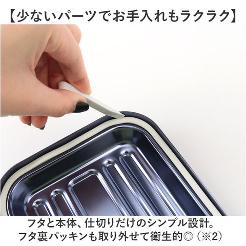 | 素材 | [本体・フタ]アルミニウム合金 [止め具]ステンレス [仕切]ポリプロピレン [ローラー・パッキン]シリコーンゴム [パッキン外しツール]ABS樹脂 |