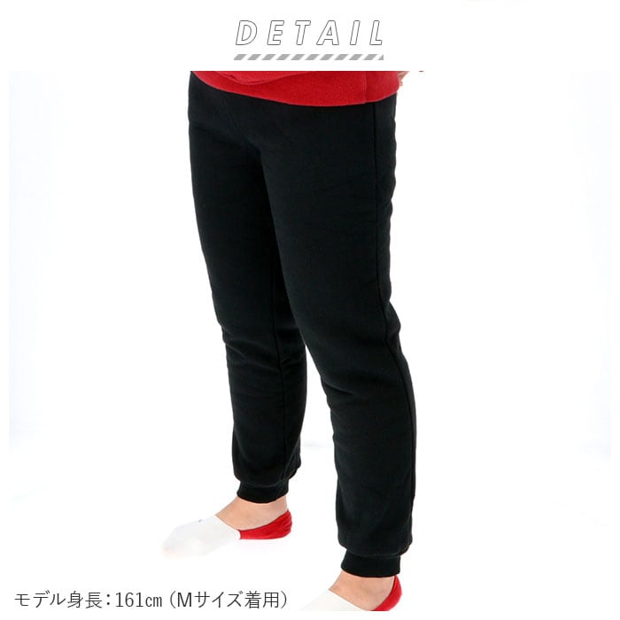 | 商品説明 | 裏起毛のモコモコ素材が温かいレディーススウェットパンツ。裾がリブになっているので、足首にしっかりフィット!寒い冬の強い味方。真冬のお散歩やレジャーにも最適。テレワーク中のお部屋での使用やルームウェア、パジャマとしても大活躍。静電気が起きにくく、毛玉ができにくい素材なのもうれしい。ウエストゴムタイプで身体が締め付けられず、リラックスタイムに履きやすい。ウエスト幅は紐でギュッと絞れて調整が可能。 |