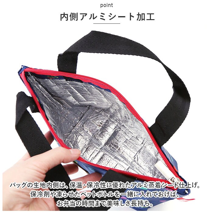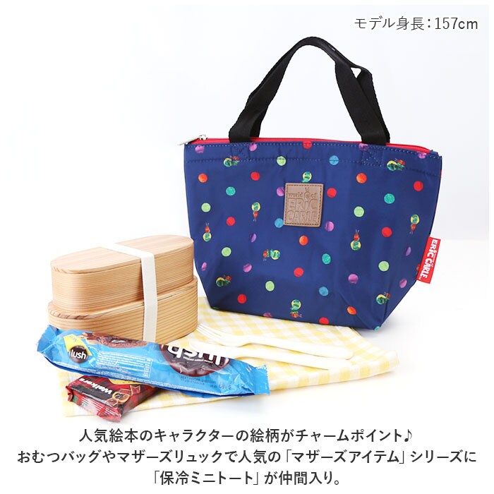 | 商品説明 | 人気絵本のキャラクターの絵柄がチャームポイント♪おむつバッグやマザーズリュックで人気の「マザーズアイテム」シリーズに「保冷ミニトート」が仲間入り。【小ぶりに見えてたっぷり入る】ランチボックスは平置きに、500mlペットボトルなら2本分すっぽりと収まるマチ広設計。大きすぎず、小さすぎず、誰にでも使いやすいちょうどいいサイズ感!【内側アルミシート加工】バッグの生地内側は、保温・保冷性に優れたアルミ蒸着シート仕上げ。保冷剤や凍らせたペットボトルを一緒に入れておけば、お弁当の時間まで美味しさ長持ち。【安心の天ファスナータイプ】バッグの開口部はきっちり閉まって保冷剤の冷気を逃がさないファスナータイプ。横幅いっぱいに大きく開いて、ランチボックスの出し入れがスムーズ。【使い方は自分次第】普段使いのランチバッグとしてはもちろん、哺乳瓶や離乳食を持ち運ぶためのベビー用お食事バッグとして、スーパーで買った生鮮食品・デザートを持ち帰る時などにも大活躍!【世界中で愛されるデザイン】お子さまから大人まで幅広く人気を集める「ミッフィーちゃん」や「はらぺこあおむし」などの可愛らしいテキスタイルも魅力。フェイクレザーのロゴネームがデザインのワンポイント。 |