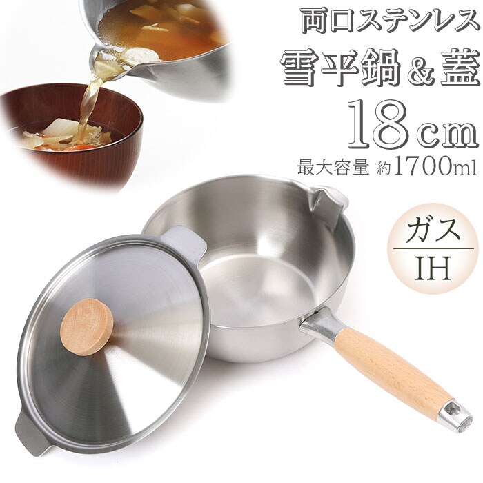 商品名aikata 両口ステンレス雪平鍋セット 18cm