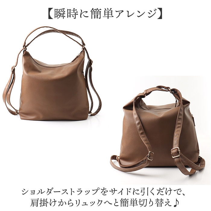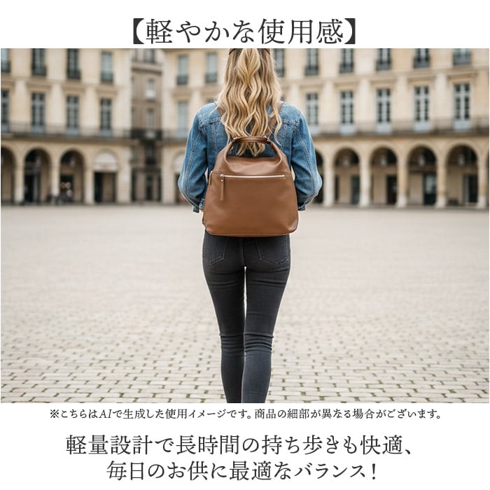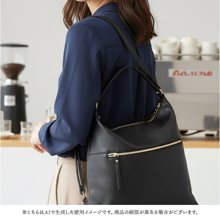 | 商品説明 | 【瞬時に簡単アレンジ】ショルダーストラップをサイドに引くだけで、肩掛けからリュックへと簡単切り替え♪【シーンに合わせて使い分け】ビジネスからデイリーまで幅広く対応、上品な2WAYリュックショルダーバッグ。【A4も楽々な収納力】書類も13インチPCもすっぽり入る大容量設計で、通勤からお出かけまで頼れる相棒◎【上質な高見えバッグ】柔らかな手触りが魅力で、持つたびに上品な気分を演出してくれる。【取り出しやすい外ポケット】正面とサイドのファスナーポケットは、必要なものをサッと取り出せて便利〇【整理上手な内ポケット】内側にはファスナーポケットと2つのスリットポケットも備えて小物の整理も完璧。【軽やかな使用感】軽量設計で長時間の持ち歩きも快適、毎日のお供に最適なバランス! |