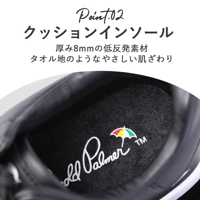 | 商品説明 | 可愛らしい傘マークでおなじみの「Arnold Palmer」から、定番コートスニーカーが登場。【遊び心溢れるデザイン】サイドに手書き風の傘マークをプリント。足元からおしゃれに♪【ブランドロゴも!】タン部分のロゴもアクセント!【軽量設計】長時間履いてもストレスフリー。【程よいクッション性】低反発素材を使用したインソールを装備!表面はタオル地のような優しい肌触り。【柔軟性のあるアウトソール】つま先部分に屈曲性があり、歩きやすさばっちり。【1足あると便利】足に負担がかかりにくい!デイリー使いにおすすめのアイテム。 |