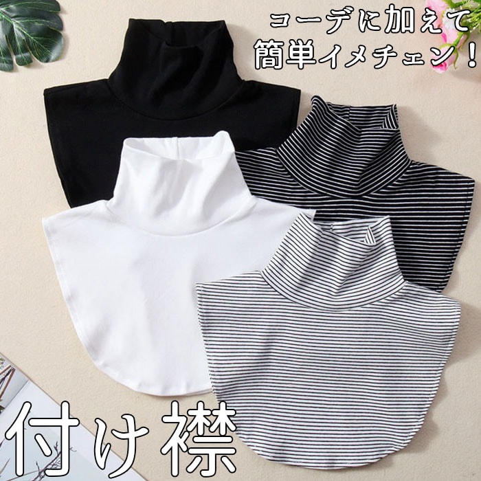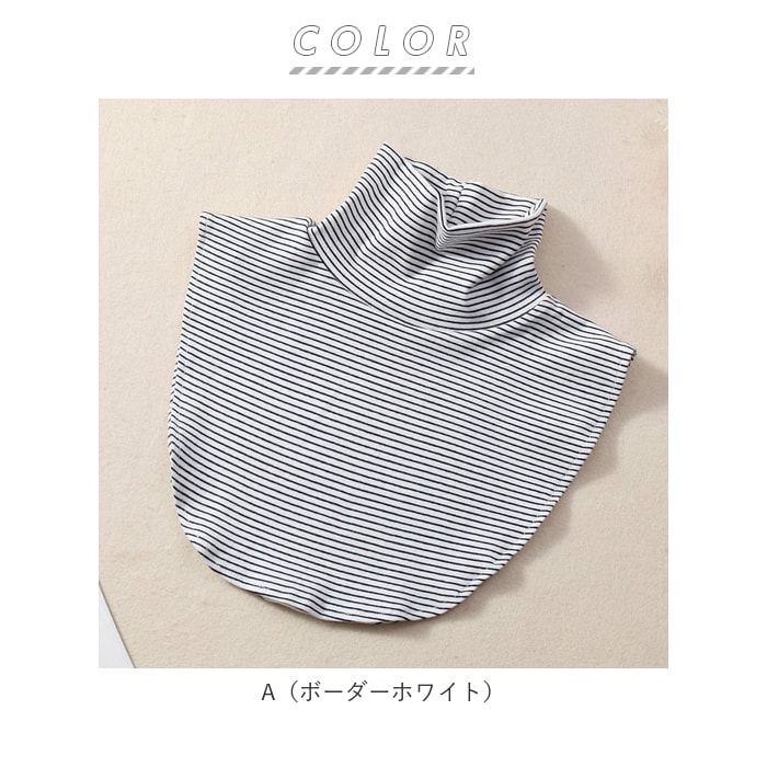 | 商品説明 | 襟元のおしゃれを手軽に楽しめる♪つけ襟が新登場!カットソーやトレーナー、ニット等と組み合わて普段のコーディーネートのアクセントに!伸縮性に優れた柔らかい肌触りのハイネックタイプ。首元をしっかりカバーしてくれて防寒対策にもおすすめ。頭からかぶるだけの楽ちん仕様。着膨れを気にすることなく重ね着風のコーディネートを楽しめる。カジュアルなボーダー柄と無地の2種類を展開。どちらもベーシックカラーで合わせやすいのが嬉しい! |