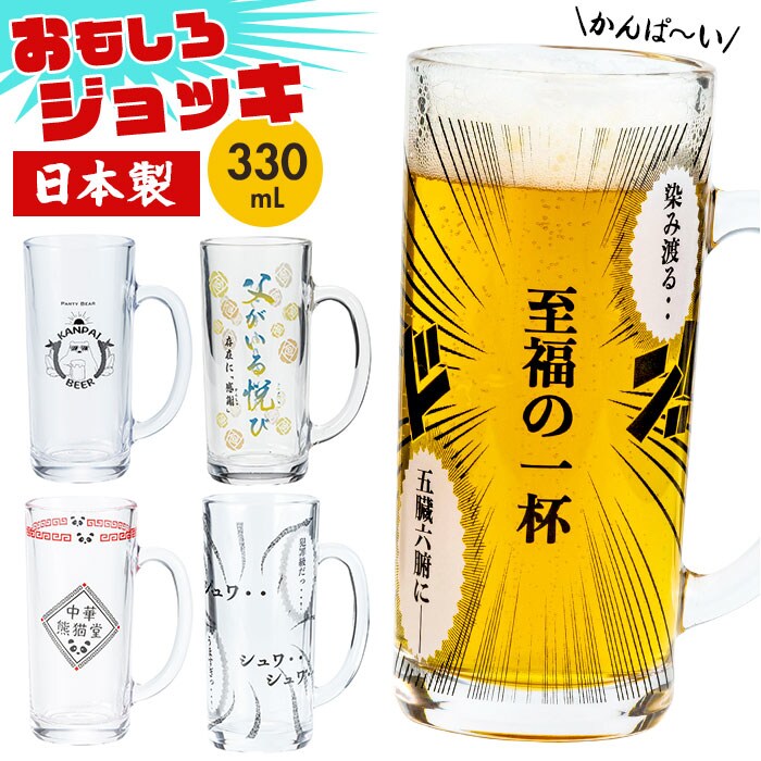 | 商品説明 | 【お酒を愛するあなたにおすすめ】いつもの晩酌タイムが、もっと楽しくなる「おもしろジョッキ」。安心の日本製。【遊び心のあるデザインでハッピーに】仕事終わりや汗をかいた後、お風呂上りに最高の1杯を!くすっと笑みがこぼれるデザイン☆【ゴクゴク飲めるジョッキタイプ】泡立ちを楽しみやすい、広めの飲み口。お店のような雰囲気で豪快に味わえるのが魅力◎【厚めのガラスでしっかりしたつくり】保冷性が高く、冷たい状態をキープ。重さがあることでグラスが傾きにくく、一気飲みを防止。(※)デザインにより容量が異なります。【パーティーなどでも大活躍!】みんなが集まるシーンでも盛り上がること間違いなし!お酒好きな方へのギフトにも。 |