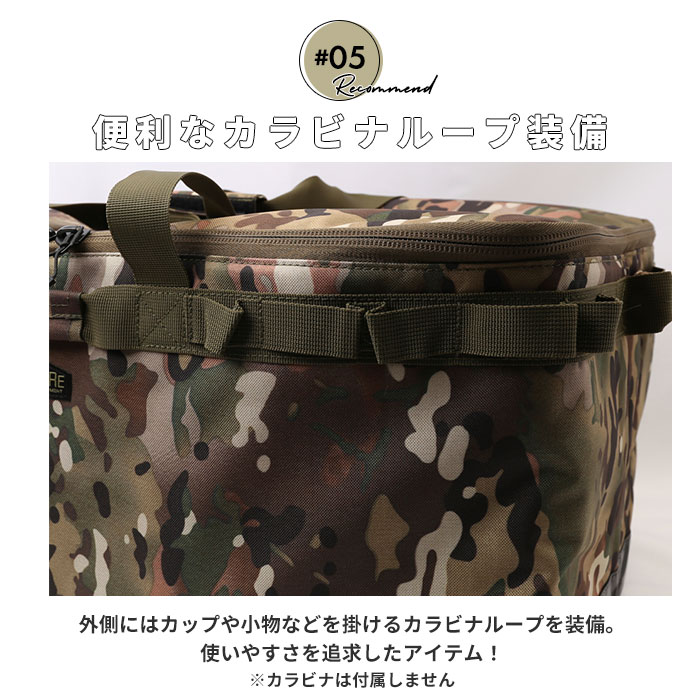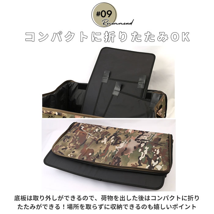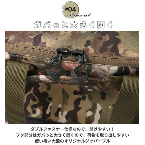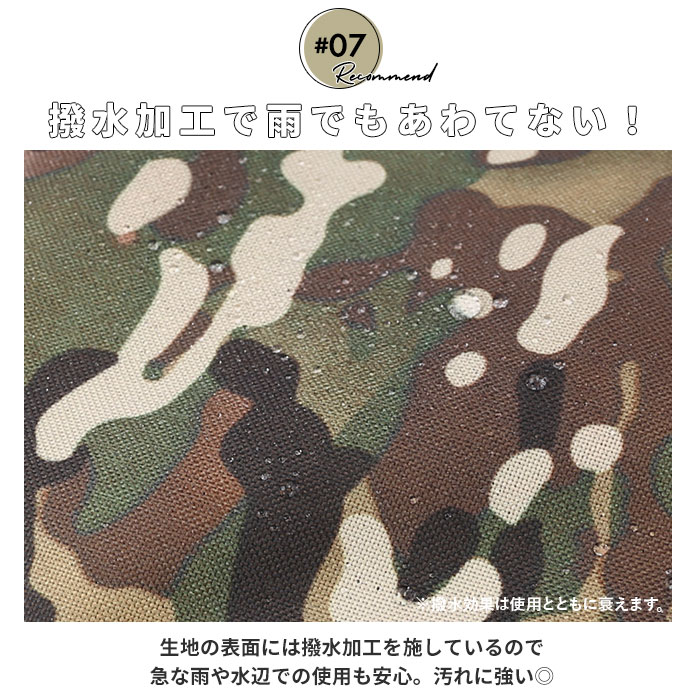 | 素材 | [ダークオリーブ] ポリエステル900D撥水加工(上部) ポリエステルPVCコーティング(内貼) ターポリン(底部) [ブラックカモ/リーフカモグレー/リアルツリー/デザートカモ] ポリエステル600D撥水加工(上部) ポリエステルPVCコーティング(内貼) ターポリン(底部) |