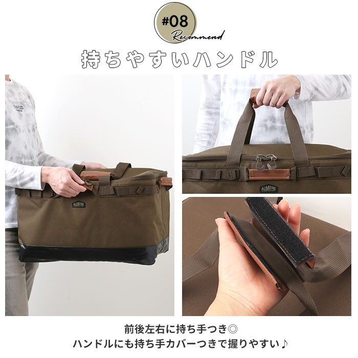| 商品説明 | たっぷり収納、すっきり折りたたみOK!キャンプやバーベキューなどで大活躍の「albatre マルチギアコンテナ 48L」が登場。【たっぷり収納】ソフトタイプの形状でたっぷり収納◎48Lサイズでキャンプギアなどを整理して収納出来るちょうど良いサイズ感!【取り外し&位置調節可能な仕切り板】面ファスナーテープで取り外しも位置調節もできる、万能の仕切り板つき!荷物に合わせて自分仕様にレイアウトできる優れモノ!【コンパクトに折りたたみOK】底板は折りたたみができるので、荷物を出した後はコンパクトに折りたたみができる!場所を取らずに収納できるのも嬉しいポイント。【メッシュポケット】フタの内側部分には横入れタイプのメッシュポケットあり!面ファスナーつきで中身が飛び出しにくく、何が入ってるか見えるので使いやすい◎【ダブルファスナー】ダブルファスナー仕様なので、開けやすい!フタ部分はガバっと大きく開くので、荷物を取り出しやすい!【カラビナループ装備】外側にはカップや小物などを掛けるカラビナループを装備。使いやすさを追求したアイテム!【おしゃれなデザイン】「albatre」のロゴが引き立つシンプルでおしゃれなデザイン。アウトドアや釣り、旅行や車中泊など様々なシーンでも馴染む。【ポケット仕様】メイン収納:メッシュポケット×1 |