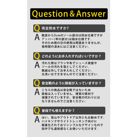 | 商品説明 | トレッキングや登山にも十分対応可能なトレッキングシューズ軽くてしっかりとしたつくりに、クッション性が高いインソールで快適な履き心地を実現溝が深いグリップアウトソールで地面をしっかりキャッチ内部に溜まった湿気は外に排出し、外部からの水は中に通さない防水透湿素材なので快適に利用可能(完全防水ではありません。)少し小さめなので、 0.5cmから1cm大きめがお勧め |