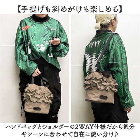 | 商品説明 | 【巾着フリルの2WAYトート】ころんと可愛い巾着型のMISFITSサンフラワー2WAYトート。【手提げも斜めがけも楽しめる】ハンドバッグとショルダーの2WAY仕様だから気分やシーンに合わせて自在に使い分け♪【ころんと愛らしい巾着フォルム】フリルがさりげなく華やかで普段のコーデにバッグをプラスするだけでおしゃれに◎【小さめでも頼れる収納力】ペットボトルやポーチもすっぽり入るから見た目以上にしっかり収まる容量〇 |