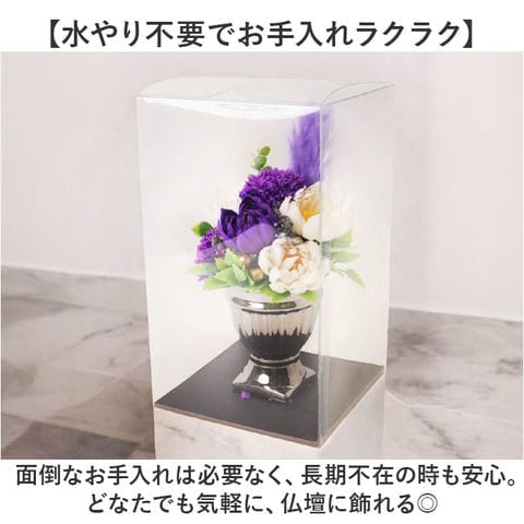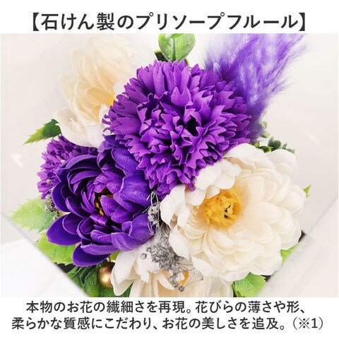 | 商品説明 | 【大切な方に美しいお花を捧げよう】お供え向けのプリソープ&プリザーブドフラワーアレンジ。「ソメイユ・ペジーブル」。【そのまま飾れるアレンジメント】陶器のフラワーベースに、ソープフラワーを。届いたらそのまま、美しい状態で楽しめる♪【石けん製のプリソープフルール】本物のお花の繊細さを再現。花びらの薄さや形、柔らかな質感にこだわり、お花の美しさを追及。(※1)直射日光や強い照明に長時間当てると、変色の恐れがあります。また、高温多湿を避けてください。【水やり不要でお手入れラクラク】面倒なお手入れは必要なく、長期不在の時も安心。どなたでも気軽に、仏壇に飾れる◎【ちょっとした贈り物にもぴったり】クリアボックス入りで、場所を選ばないサイズ感。想いをプリソープフルールに込めて届けよう♪(※2)観賞用のため、入浴剤や石けんとしては使用できません。 |