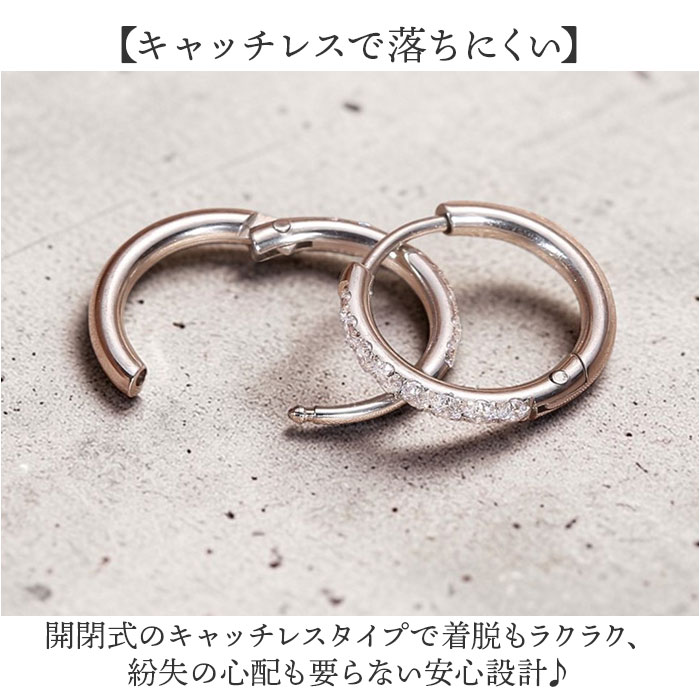 | 商品説明 | 【上品ジルコニアで耳元輝く】洗練されたフープラインにジルコニアが輝く、大人女性のための毎日ピアス。【洋服を選ばないデザイン】ベーシックなフープにジルコニアを添えた、どんなスタイルにも馴染む万能ピアス◎【キャッチレスで落ちにくい】開閉式のキャッチレスタイプで着脱もラクラク、紛失の心配も要らない安心設計♪【つけっぱなしOKの素材】錆や傷がつきにくいステンレス素材だから、お風呂でも外さず毎日大活躍!【ギフトにも選ばれる逸品】飽きのこないエレガントなデザインは、大切な人へのプレゼントにも最適。 |
