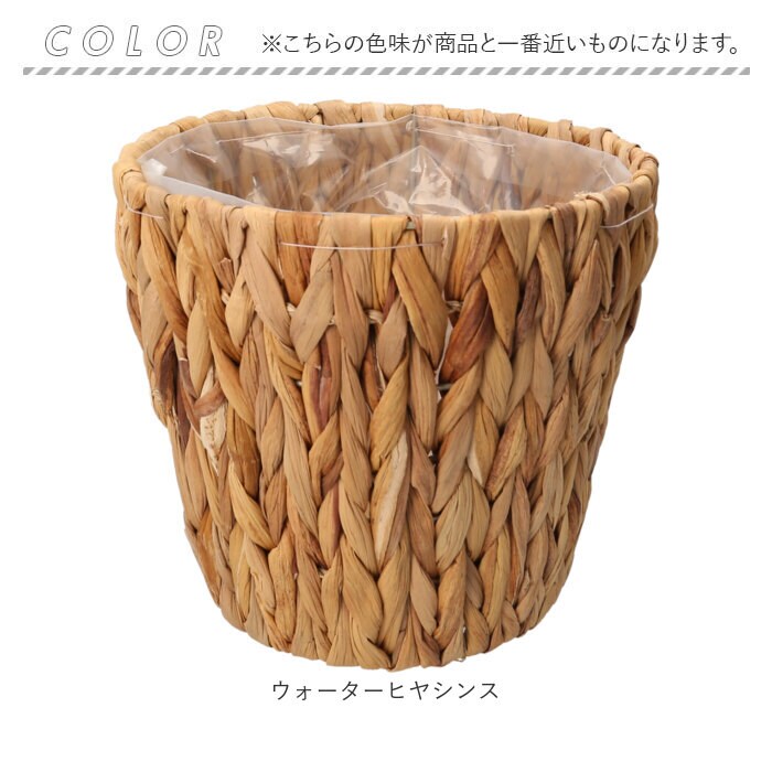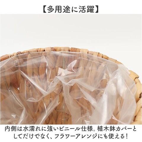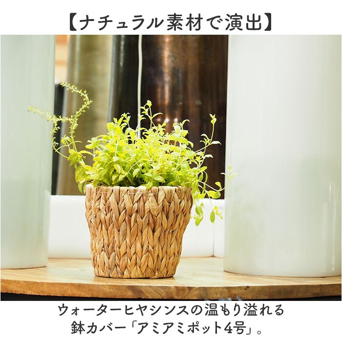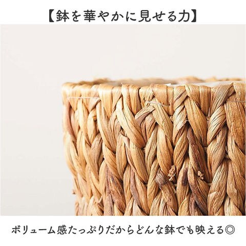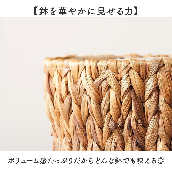 | 商品説明 | 【ナチュラル素材で演出】ウォーターヒヤシンスの温もり溢れる鉢カバー「アミアミポット4号」。【鉢を華やかに見せる力】ボリューム感たっぷりだからどんな鉢でも映える◎【4号鉢にジャストサイズ】4号鉢がすっぽり収まる絶妙な大きさ♪【天然素材の温もり】乾燥させたウォーターヒヤシンスの茎をふっくらと三つ編みに。お部屋に自然の癒しをプラス〇【多用途に活躍】内側は水濡れに強いビニール仕様。植木鉢カバーとしてだけでなく、フラワーアレンジにも使える! |
