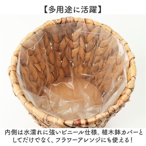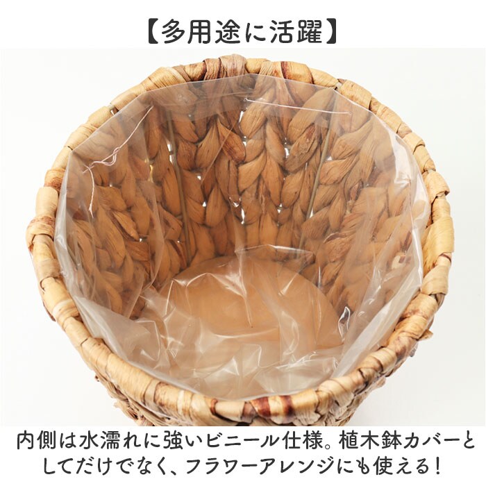 | 商品説明 | 【ナチュラル素材で演出】ウォーターヒヤシンスの温もり溢れる鉢カバー「アミアミポット5号」。【鉢を華やかに見せる力】ボリューム感たっぷりだからどんな鉢でも映える◎【5号鉢にジャストサイズ】5号鉢がすっぽり収まる絶妙な大きさ♪【天然素材の温もり】乾燥させたウォーターヒヤシンスの茎をふっくらと三つ編みに。お部屋に自然の癒しをプラス〇【多用途に活躍】内側は水濡れに強いビニール仕様。植木鉢カバーとしてだけでなく、フラワーアレンジにも使える! |