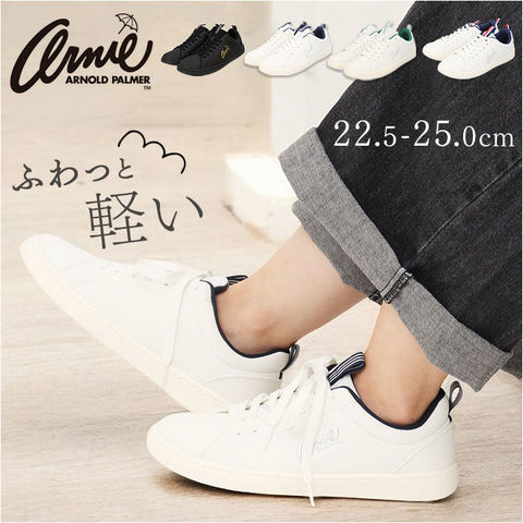 | 商品説明 | 【カジュアルコーデの定番スタイル】シンプルで爽やかなルックスで大人気♪「Arnie Arnold Palmer Ladies コートスニーカーAN0603」【デイリー使いに気軽に履ける♪】シックなモノトーンと、フラットなソールが足元をスマートに魅せる♪気軽に履けるコートスニーカー。【ふわっと快適、驚きの軽さ】片足約240gの軽量設計。履いていることを忘れる程の軽やかな履き心地で、足運びがスムーズ。※24cmサイズの商品、付属のインソールの重量を含む、片足分の計測重量です。【疲れにくい、ふかふかインソール】もっちり触感のカップインソールが歩行時の衝撃をふんわり吸収。快適な歩行スタイルをサポート。【柔らかな履き口がフィット】履き口周りも厚みのあるクッション生地で仕上げ、足首やかかとを靴ズレから優しく保護。【調整自在なシューレーススタイル】足の甲幅に合わせて調整が自在な、クラシックなシューレーススタイル。【脱ぎ履き時もストレスフリー】柔らかメッシュのシュータンとかかと、2ヶ所のプルタブで“つま先がスッ”。脱ぎ履きもスムーズに。【滑りにくいアウトソール】くさび形の凹凸を刻んだアウトソールが、濡れた路面や滑りやすいフロアーもしっかりグリップ。【抜群の屈曲性でパフォーマンスUP】走ったり、しゃがんだり・・・複雑な足の動きにフィット!屈曲性抜群のソールでスポーツに大活躍。【お手入れ簡単、いつでも清潔】スポンジタイプのカップインソールは取り外しが可能。手軽に水洗いができて、いつでも清潔♪【タウンユースやアウトドアで大活躍】アッパーは汚れや水濡れに強いオールフェイクレザー。どんな時もアクティブでいたい女性に最適。【ファッションが引き立つデザイン】ぷっくりと浮かびあがる「Arnie」のロゴとパラソルマークがパッと目を惹くアクセント。 |