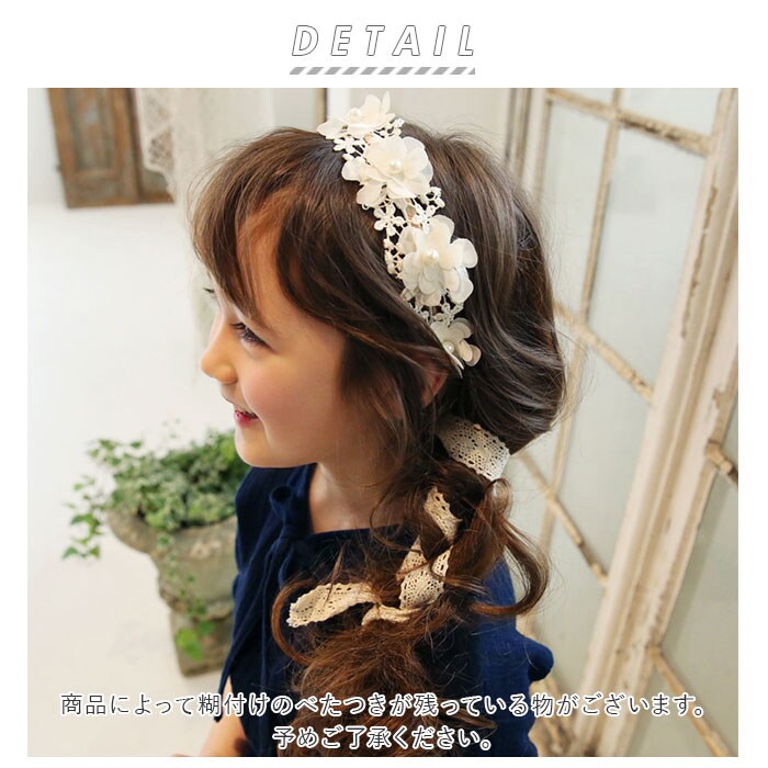 | 商品説明 | レース使いがフェミニンなキッズ用ヘアアクセサリーが登場!存在感のあるお花のモチーフと長めのリボンがヘアアレンジのアクセントに♪つけるだけのカチューシャタイプだから簡単にアレンジできちゃうのが嬉しい。レース部分までこだわったかわいらしくも上品なデザインが女の子らしさをアップさせる。お洒落しておでかけしたい時はもちろん、発表会や結婚式などの特別なシーンにもおすすめ。 |