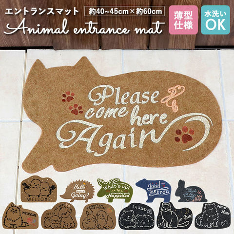 | 商品説明 | 可愛いアニマル柄の薄型エントランスマットが新登場♪厚み約5mmの薄型仕様だから、ドアに干渉せずに開閉がスムーズ!ドアと床のすき間が狭い場所でも使えて便利。ポリエステル繊維が靴裏に付いた砂や泥などをしっかりキャッチ。表面についた汚れは、ホウキで裏面からはたいて表面をサッと拭けばOK!しつこい汚れはブラシを使用して水洗いできるので、いつでも清潔に保てる!マット裏側全面に滑り止め加工を施してあるので、人通りの多い玄関でもズレにくく安心。玄関の汚れ防止やインテリアのアクセントに♪ |