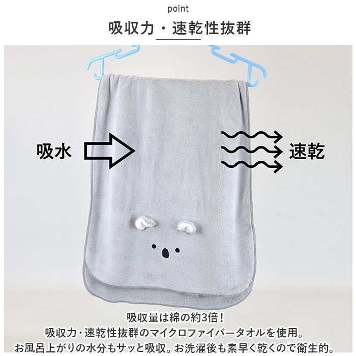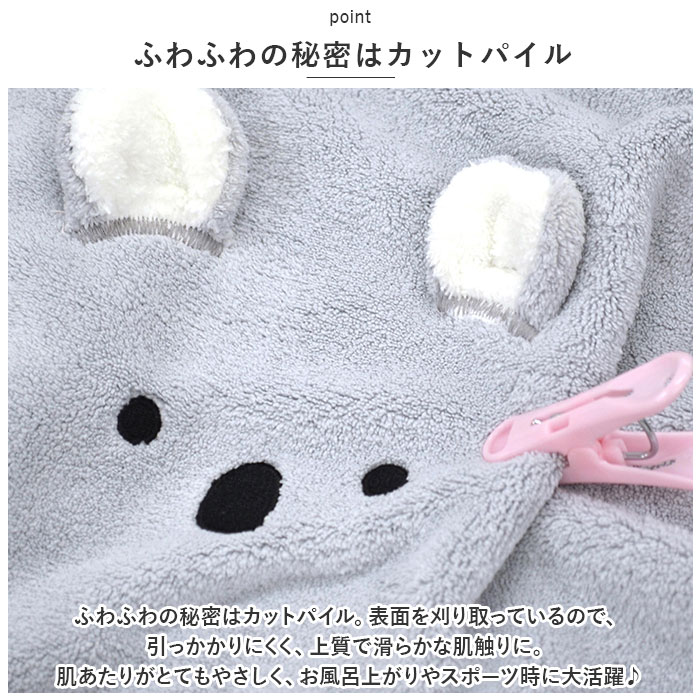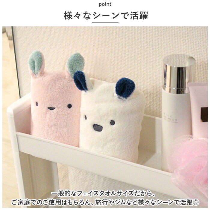 | 商品説明 | 触れて・干して・畳んで楽しむ「吸水アニマル フェイスタオル」。【お子さまとも楽しくお片付け♪】タオルの下あたりにクマちゃんのお顔とお耳がこんにちは。お耳がちょこんと飛び出た立体的なデザイン。畳むとまるでぬいぐるみのようになるので、お子さまとも楽しくお片付け♪【吸収力・速乾性抜群】吸収量は綿の約3倍!吸収力・速乾性抜群のマイクロファイバータオルを使用。お風呂上がりの水分もサッと吸収。お洗濯後も素早く乾くので衛生的。【ふわふわの秘密はカットパイル】ふわふわの秘密はカットパイル。表面を刈り取っているので、引っかかりにくく、上質で滑らかな肌触りに。肌あたりがとてもやさしく、お風呂上がりやスポーツ時に大活躍♪【様々なシーンで活躍】一般的なフェイスタオルサイズだから、ご家庭でのご使用はもちろん、旅行やジムなど様々なシーンで活躍◎ |