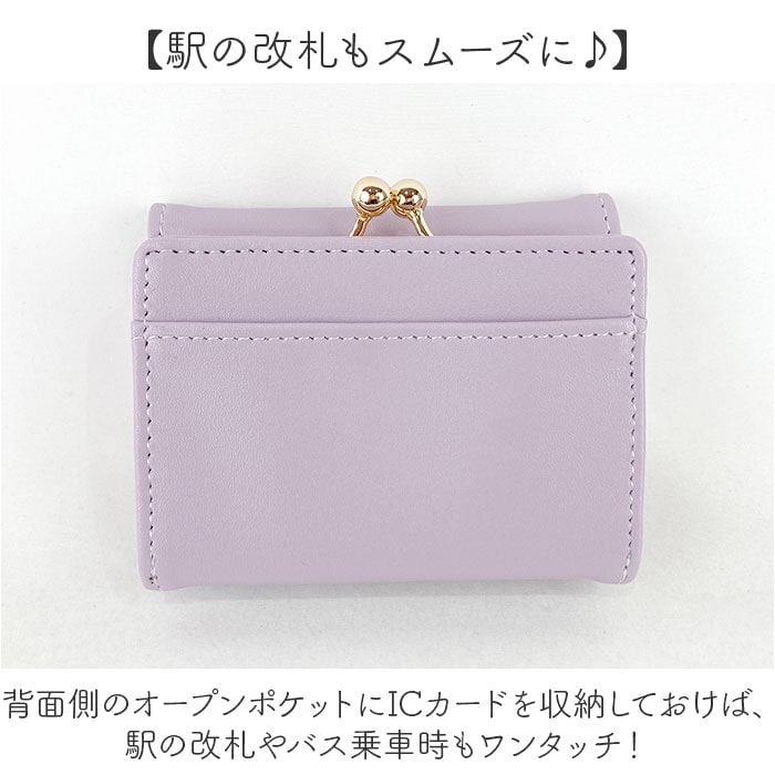 | 商品説明 | 【アニマルのモチーフがキュート☆】手のひらサイズで使いやすい「がま口折り財布」が新登場。【コンパクトな3つ折りタイプ】スナップボタン式のフラップを開くと、3つに折りたためるタイプの札入れスペースが1つ。【キャッシュレス派にも◎】札入れスペース正面に、カードポケットを設け、キャッシュレス派にも嬉しいつくり。【レトロ可愛いがま口スタイル】コインスペースはレトロながま口タイプ。小銭がひと目で確認できるボックスマチ仕上げ。【駅の改札もスムーズに♪】背面側のオープンポケットにICカードを収納しておけば、駅の改札やバス乗車時もワンタッチ!【個性的なモチーフデザイン】柔らかなフェイクレザーを使用。キュートでバラエティに富んだモチーフデザインも魅力。(※)カラーによりモチーフのデザインが異なります。【ポケット仕様】[フラップ内側]札入れスペース×1、カードポケット×4[お財布背面側]がま口コインスペース×1、オープンポケット×1 |