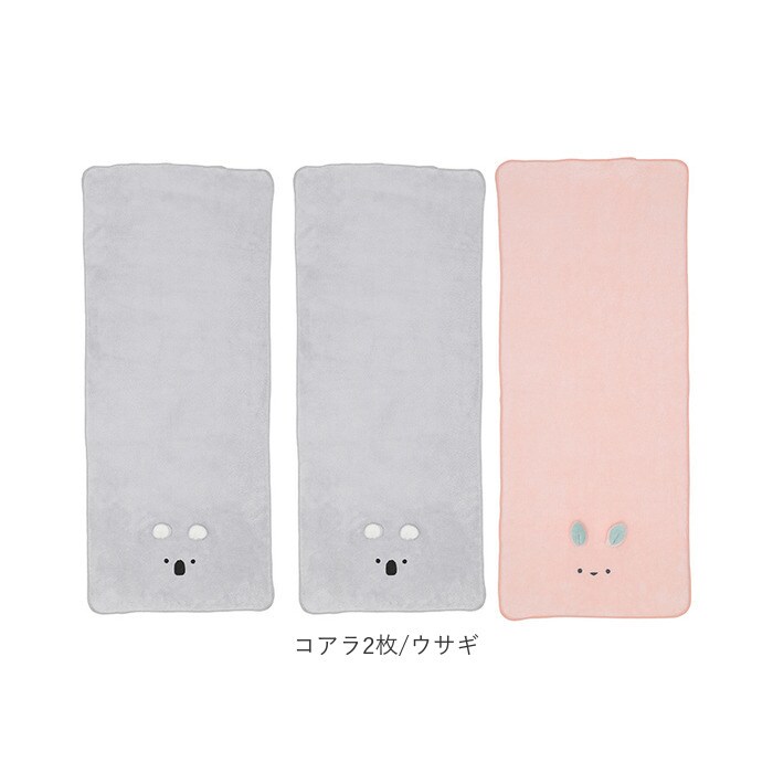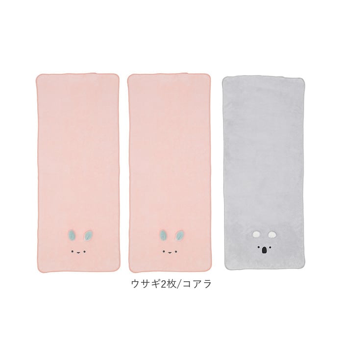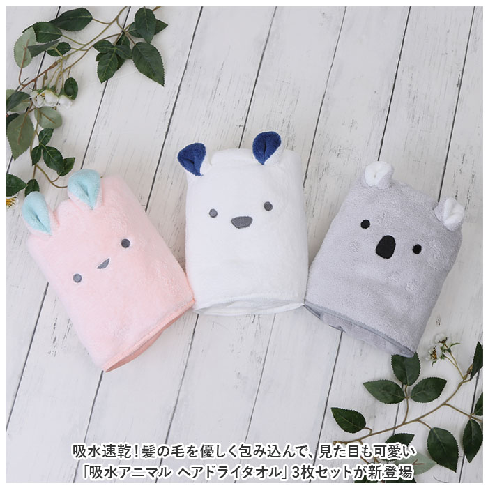 吸水アニマル ヘアドライタオル 3枚セット【ウサギ2枚/コアラ】