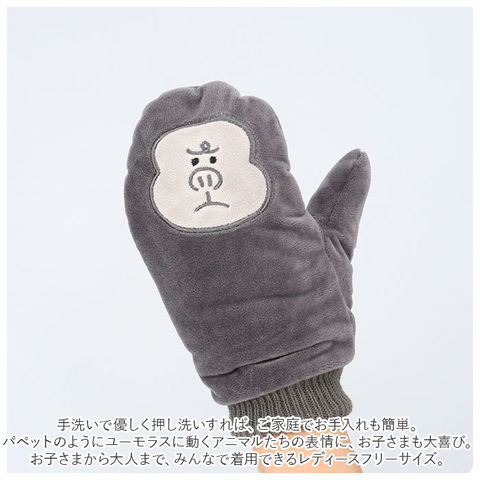 | 商品説明 | 指先からほほ笑みかけるアニマルたちにほっこり♪可愛くてあったか「アニマルカバーミトン」指先部分に表情豊かなアニマルフェイスを縫い付けたミトンタイプの手袋。モチモチで滑らかな手触りがクセになる!表面にはベロア調生地、内側は真っ白でふかふかのボア素材を使用。カフス部分のリブ生地が手首にぴったりと密着、すきま風を防いで暖かさをキープ。手のひら側の人差し指から小指まで4本の指が出せるので、スマホ操作や手元の細かい作業にとっても便利!手袋のつけ外しによるうっかり落とし防止にも◎手洗いで優しく押し洗いすれば、ご家庭でお手入れも簡単。パペットのようにユーモラスに動くアニマルたちの表情に、お子さまも大喜び。お子さまから大人まで、みんなで着用できるレディースフリーサイズ。憎めない表情を浮かべる、キュートなアニマルたちが勢揃い!お気に入りを選んでね。 |