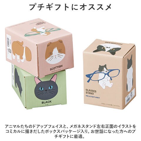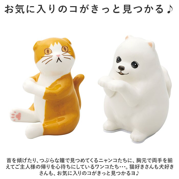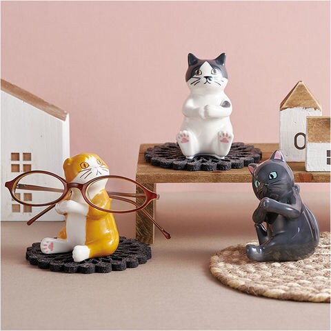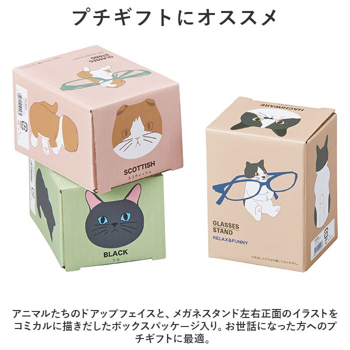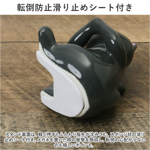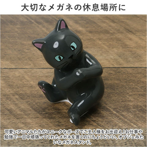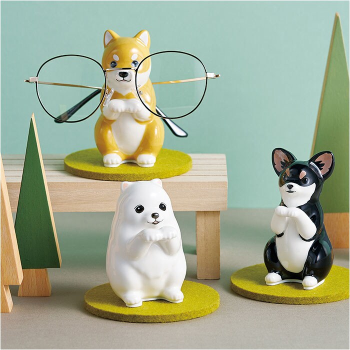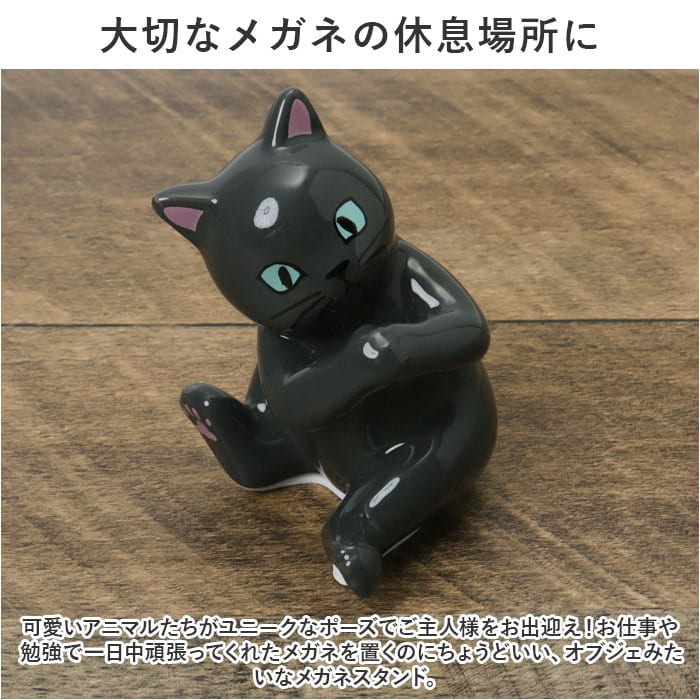 | 商品説明 | ぴょこんとお座りしたアニマルたちが、大切なメガネをキャッチ!眺めているだけでお部屋が和む「アニマル メガネスタンド」が新登場。【大切なメガネの休息場所に】可愛いアニマルたちがユニークなポーズでご主人様をお出迎え!お仕事や勉強で一日中頑張ってくれたメガネを置くのにちょうどいい、オブジェみたいなメガネスタンド。【ちょこんと置くだけで簡単♪】メガネのテンプルを少しだけ広げて、アニマルの首にちょこんと置くだけでケースにしまうより簡単!胸元で組んだ両手でしっかり支えてくれるよ♪【丈夫で艶やかな磁器素材】色鮮やかな絵付けと艶やかな釉薬で仕上げた磁器製(ニューボン製)なので、程よい重みで安定感もばっちり。【転倒防止滑り止めシート付き】スタンド裏面は、軽く押すとふんわり指先が沈みこむ、スポンジ状の滑り止めシート付き。メガネを置いた時の衝撃を吸収し、転倒の心配が少ないのも嬉しいポイント。【お気に入りのコがきっと見つかる♪】首を傾げたり、つぶらな瞳で見つめてくるニャンコたちに、胸元で両手を揃えてご主人様の帰りを心待ちにしているワンコたち・・・。猫好きさんも犬好きさんも、お気に入りのコがきっと見つかるヨ♪【プチギフトにオススメ】アニマルたちのドアップフェイスと、メガネスタンド左右正面のイラストをコミカルに描きだしたボックスパッケージ入り。お世話になった方へのプチギフトに最適。 |