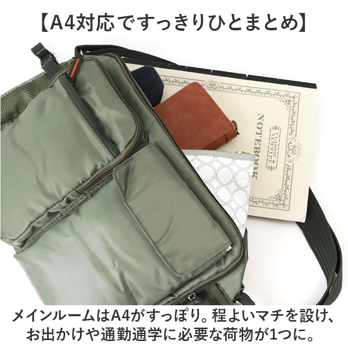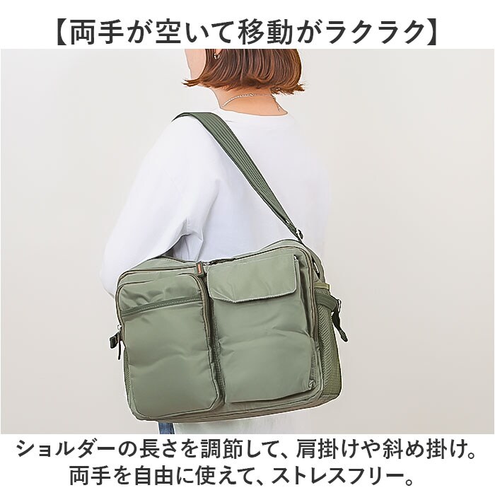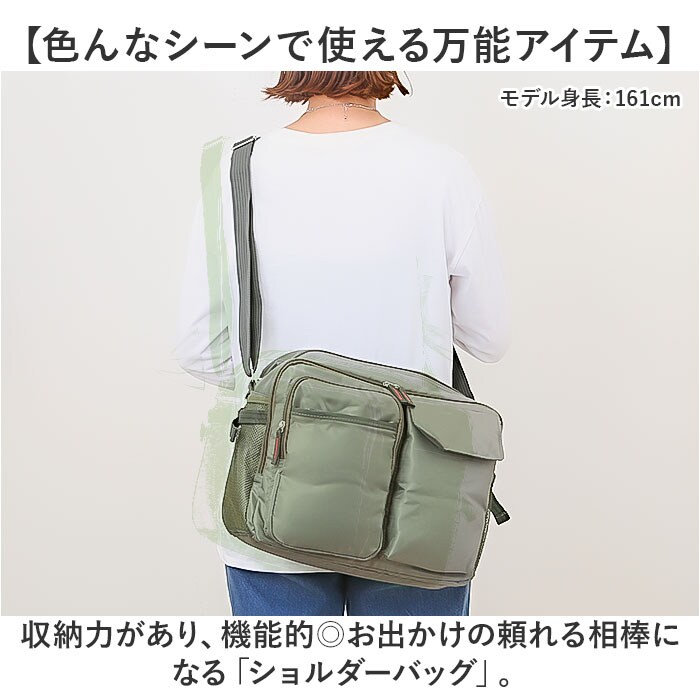 | 商品説明 | 【色んなシーンで使える万能アイテム】収納力があり、機能的◎お出かけの頼れる相棒になる「ショルダーバッグ」。【両手が空いて移動がラクラク】ショルダーの長さを調節して、肩掛けや斜め掛け。両手を自由に使えて、ストレスフリー。【開閉スムーズ、安心のファスナー式】ガバっと開いて取り出しやすく、ファスナーを閉じれば中身の飛び出しをガード。【A4対応ですっきりひとまとめ】メインルームはA4がすっぽり。程よいマチを設け、お出かけや通勤通学に必要な荷物が1つに。【仕分けに便利なポケット付き】メインの内側と、メインの前面・背面にポケットを配置。大きな物も分けて収納◎【アクセントにもなるポケット】最前面には3つのポケットを。小物が迷子になりにくく、デザインのポイントにも。【サッと取り出せるサイドポケット】サイドにはペットボトルや折りたたみ傘をIN。サイズ調節可能なベルトで固定OK。【お揃いで持てるユニセックス仕様】性別や年代問わず使いやすい、シンプルなデザイン。お揃いやシェアも!【ポケット仕様】メインルーム内側:面ファスナー式ポケット×1前面:ダブルファスナー式ポケット×1最前面:ファスナーポケット×2、面ファスナー式フラップポケット×1サイド:メッシュポケット×2背面:面ファスナー式ポケット×1 |