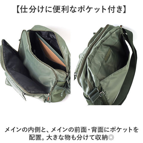 | サイズ | [縦]約26cm/[横]約35cm/[マチ]約12cm [ショルダー]約78cm~約140cm(調節可能) ※サイズは当店計測の実寸サイズです。実際の商品ならびにメーカー表記サイズとは多少の誤差が生じる場合がございます。あらかじめご了承ください。 |