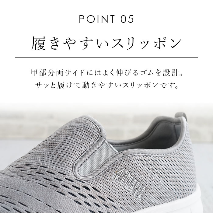 | 商品説明 | 可愛らしい傘マークがおなじみの「Arnold Palmer」から、「Arnold Palmer メンズ スリッポン スニーカー AP0016」が新登場!屈曲性のよいアウトソールは、足の動きに合わせてソールが曲がるので足が痛くなりにくい。また滑り止め加工が施されているので濡れた路面でも安心して歩ける。通気性に優れたメッシュ素材で片足約149g(※26.0cmの重量)と軽量♪さらに低反発クッションインソールが衝撃を吸収してくれるので、足が疲れにくい◎スリッポンタイプで着脱簡単なうえ、快適な履き心地なので、デイリユースから仕事、スポーツまで幅広く活躍してくれる♪ |