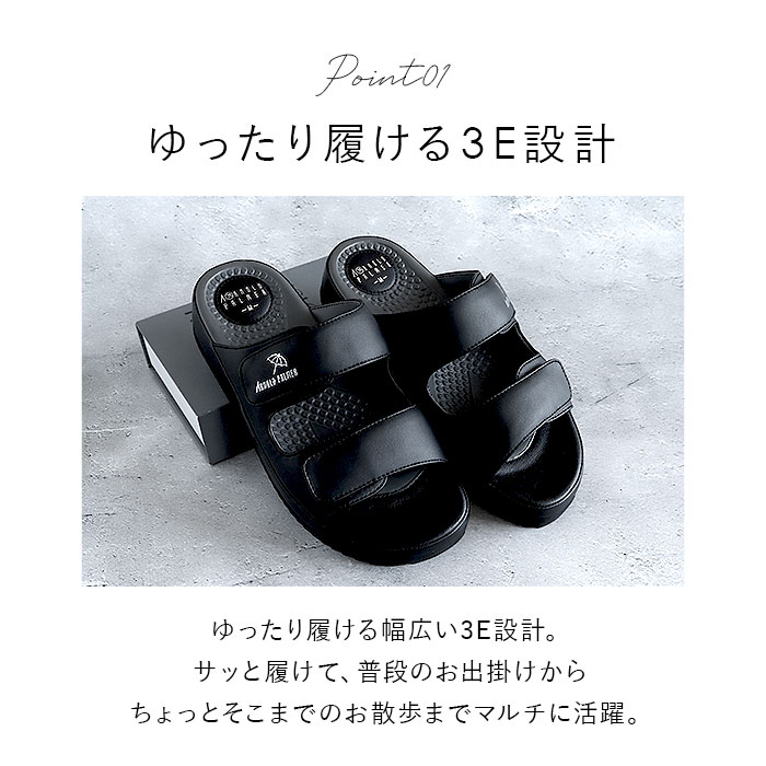 | 商品説明 | 大人気、傘のマークでお馴染みの「アーノルドパーマー」からコンフォートタイプのメンズサンダルが新登場。ゆったり履ける幅広い3E設計。サッと履けるから普段のお出かけからちょっとそこまでの買い物やお散歩までマルチに活躍◎アッパーは面ファスナーで留めるタイプだから自分好みのフィット感で調節可能!突起があるインソールは足裏を程よく刺激してくれて気持ちよく快適な履き心地。クッション性もあり衝撃を軽減してくれる。臭いの元となる細菌の繁殖を抑えてくれる抗菌防臭加工が施されているのも嬉しいポイント。 |