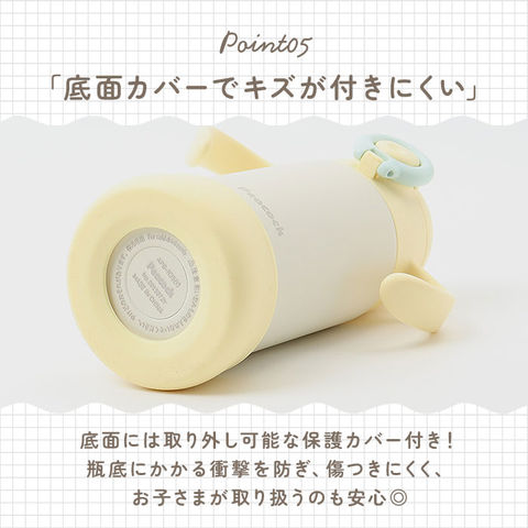| 商品説明 | 【7ヵ月頃から使える保冷専用ボトル】安心機能付きで、使い勝手抜群◎「Peacock ベビーストローボトル ハンドル付き」。【冷たさをキープ!真空2重構造】本体内側と外側が真空断熱された、ステンレスの魔法瓶構造!外出先でも、長時間温度をキープ。【ぎゅっと握りやすいハンドル】握りやすさを考えた幅とカーブ。前方に傾けることで、無理なく自然に飲めるようサポート。【片手で簡単ワンタッチオープン】開閉ボタンを押すだけで簡単に開き、ゴクゴク水分補給できる!【持ち運びも安心のロックリング】開閉ボタン部分にロックリングを装備。万が一の漏れを防止し、カバンの中に入れても大丈夫◎【お子さま1人で飲めるストロー】シリコーン製のストロー付き。柔らか素材で飲みやすく、ストロー飲みの練習にも。【デイリーに使いやすいサイズ感】スリムなフォルムで、公園遊びやお出かけにも持ち歩きやすい☆容量350mlサイズ。【食洗機対応でお手入れカンタン】パーツは分解OK&全パーツ食洗機使用可能。お手入れしやすく、忙しい毎日の味方☆【傷や衝撃から守る保護カバー】底面には取り外し可能な保護カバーを。瓶底にかかる衝撃を防ぎ、傷つきにくい!【可愛らしいナチュラルデザイン】男の子も女の子も使いやすい、温かみのあるカラー。贈り物にもおすすめ。 |