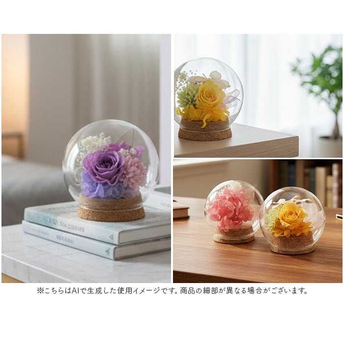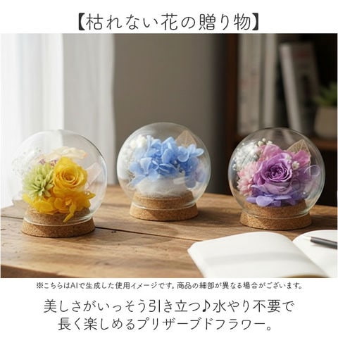 | 素材 | プリザーブドフラワー、ガラス、コルク |