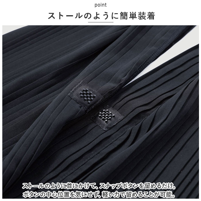 | 商品説明 | 新しい大人の食事習慣♪洋服の汚れを気にせず食事ができる、食事用エプロン「テーブルウィズ」が新登場。【ストールのように簡単装着】ストールのように首にかけて、スナップボタンを留めるだけ。ボタンの中心位置を気にせず、軽い力で留めることが可能。【エレガントなプリーツデザイン】軽くて薄い生地に、上品なプリーツをあしらったエプロン。キレイめなコーデにもさりげなく溶け込み、素敵にマッチ。ぐるりと巻いてアレンジすると、首元までカバー。【特殊加工を施したはっ水生地】汚れが染み込みにくい、はっ水加工済み。家庭でも外食でも、安心して食事を楽しめる便利アイテム。【お手入れラクラク】汚れが気になったら、洗濯ネットに入れて洗濯機洗いOK。いつも清潔に保てるのが嬉しい!(※乾燥機・アイロンの使用はお避けください。) |
