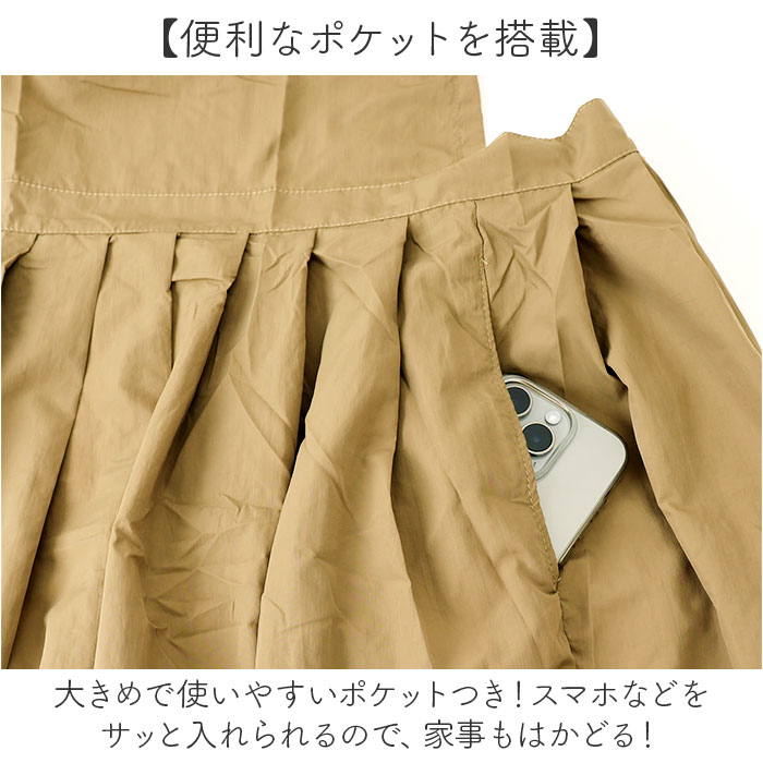 | 商品説明 | 【ワンピースみたいなおしゃれさ♪】撥水生地で、家事がはかどる!「エプロン ロング丈 ポケット付き」が登場!【カフェ風エプロンをお探しの方へ】着るだけでおしゃれ見せが叶う、大人可愛いシンプルデザイン。ふんわりギャザーがポイント☆【撥水するナイロン生地を採用】水をはじく生地だから、汚れや水濡れからしっかりガード!作業に集中できる高機能生地!※完全防水ではありません。【ロング丈でスラっと見せ】縦ラインを強調し、ハイウエスト切替でスラっとスタイルUPを叶えてくれるデザイン!【軽いから、ストレスフリー!】動きを邪魔しない、薄手の生地&軽い着心地。1日中つけても疲れにくく、快適に動ける!【便利なポケットを搭載】大きめで使いやすいポケットつき!スマホなどをサッと入れられるので、家事もはかどる!【ほっこりカラーがおしゃれ】絶妙なくすみカラーをご用意。どの色も可愛くて、イロチ買いもしたくなっちゃう! |